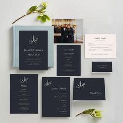 Live the suite life, AKA matching everything. Monogram wedding invitation suites are a great way to express your style — create your own with everything from custom save the dates and RSVP cards to menus and programs.