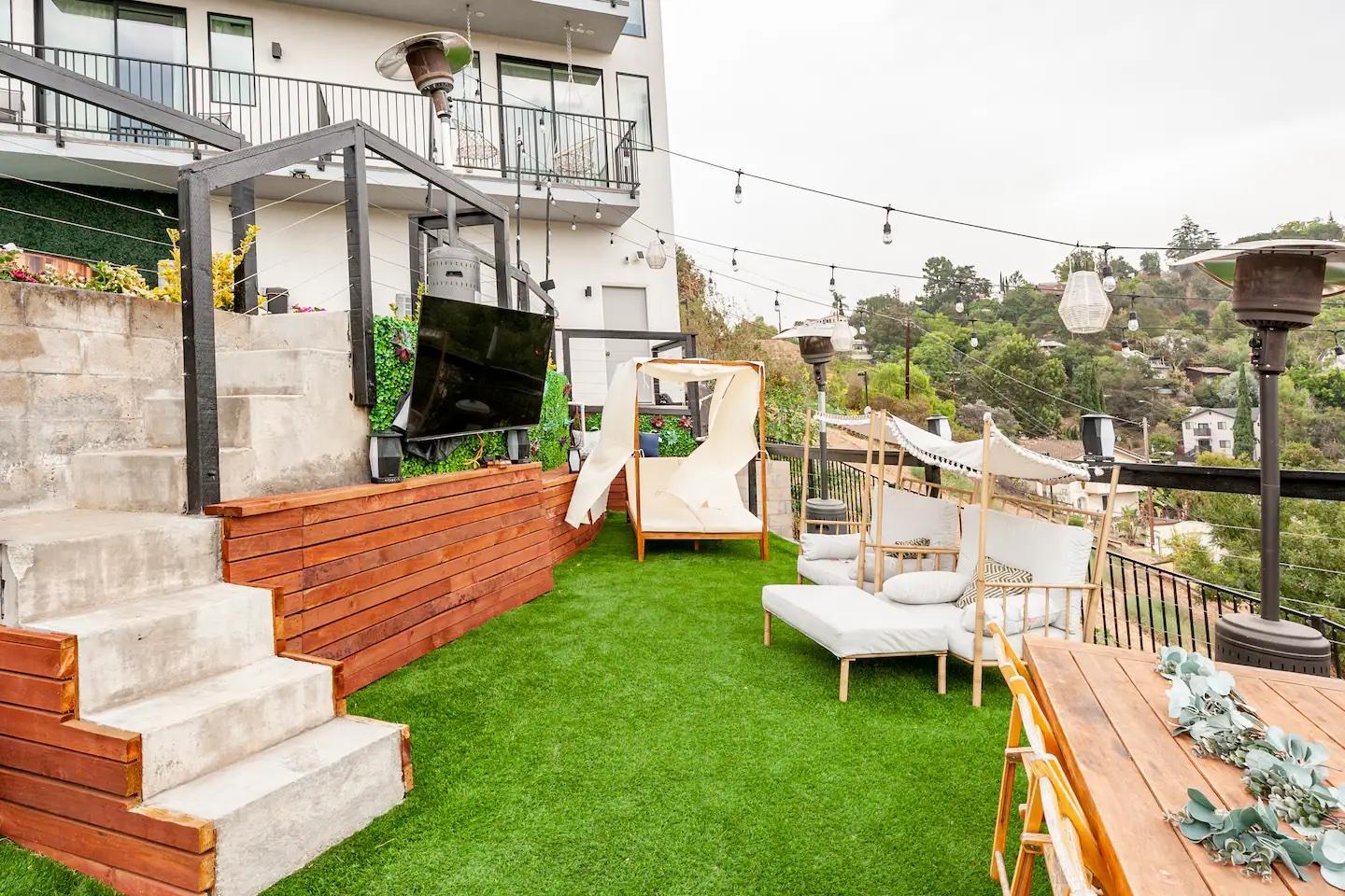 Welcome to Sany on the Hill, a modern Villa perfect for your wedding party to sleepover, get ready and celebrate all under one roof. The villa is an oasis where luxury, adventure, and relaxation converge just 12 minutes from downtown Los Angeles! Say goodbye to being apart from family and friends when you can all stay together under one roof! With two spacious units (3 bed, 2.5 baths each) providing ample space for both families/parties, along with two stunning rooftops and an outdoor area for pre and post-wedding celebrations, dinners, and more, this home offers the ultimate in convenience and togetherness.