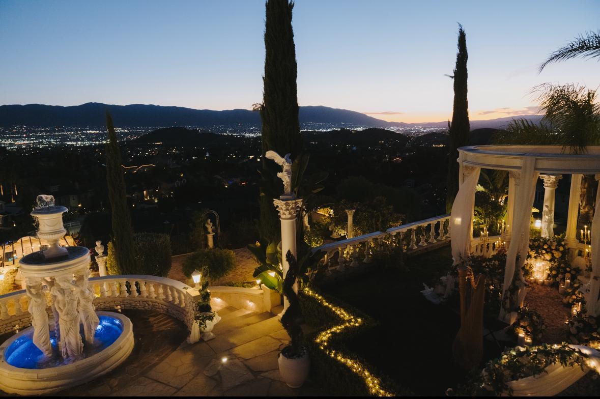 A romantic private estate nestled amidst the serene landscapes of Northern San Diego County, Enchanted Hills Estate is a wedding and event venue that harmonizes nature with luxury. This stunning property neighbors a wilderness preserve and features breathtaking mountain views, a peaceful pond, timeless gazebo, twinkling lights, and elegant Spanish-inspired architecture. The estate provides an idyllic backdrop for unforgettable memories. Whether you are hosting a wedding, private party, quinceañera, or other event, come experience the magic of this enchanting place.
