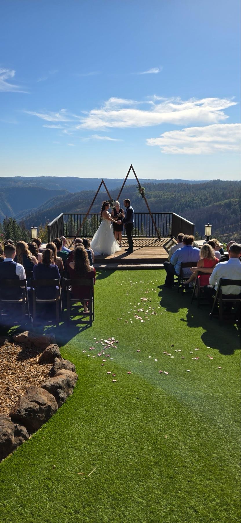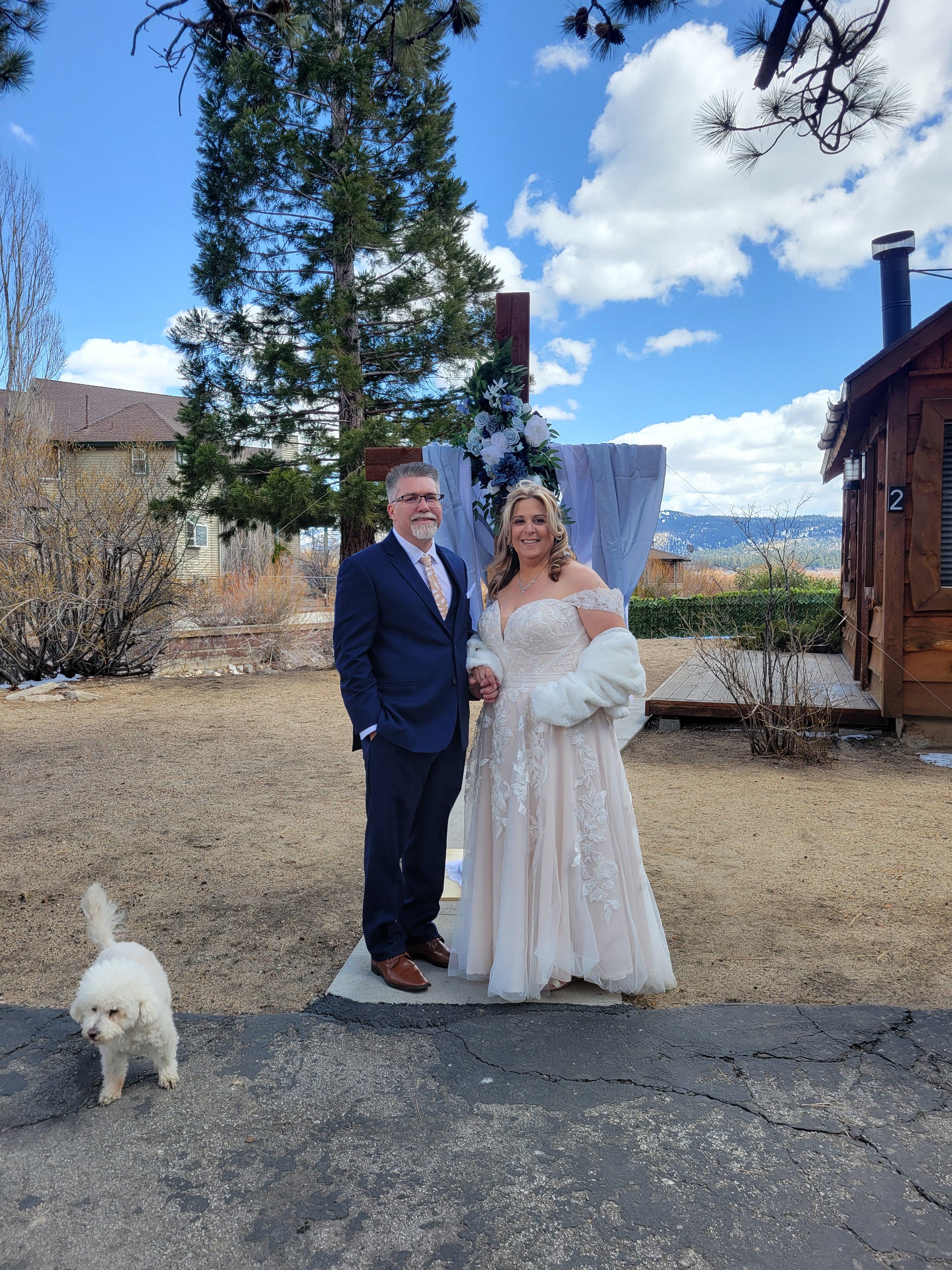 We had our wedding here April 4, 2025 and it couldn't have been more perfect. We are mountain people and even though the weather was chilly, our wedding couldn't have been more perfect. We rented out all 5 cabins for family members, had smores around the fireplace at night, and oue ceremony overlooking the ski slops of Big Bear. This is a place we have come back to since our wedding and will stay nowhere else in Big Bear. Billy and Alyssa were amazing and so friendly and accomodating. Billy actually was oir officient and was fantastic. Can't say enough great things about this place.