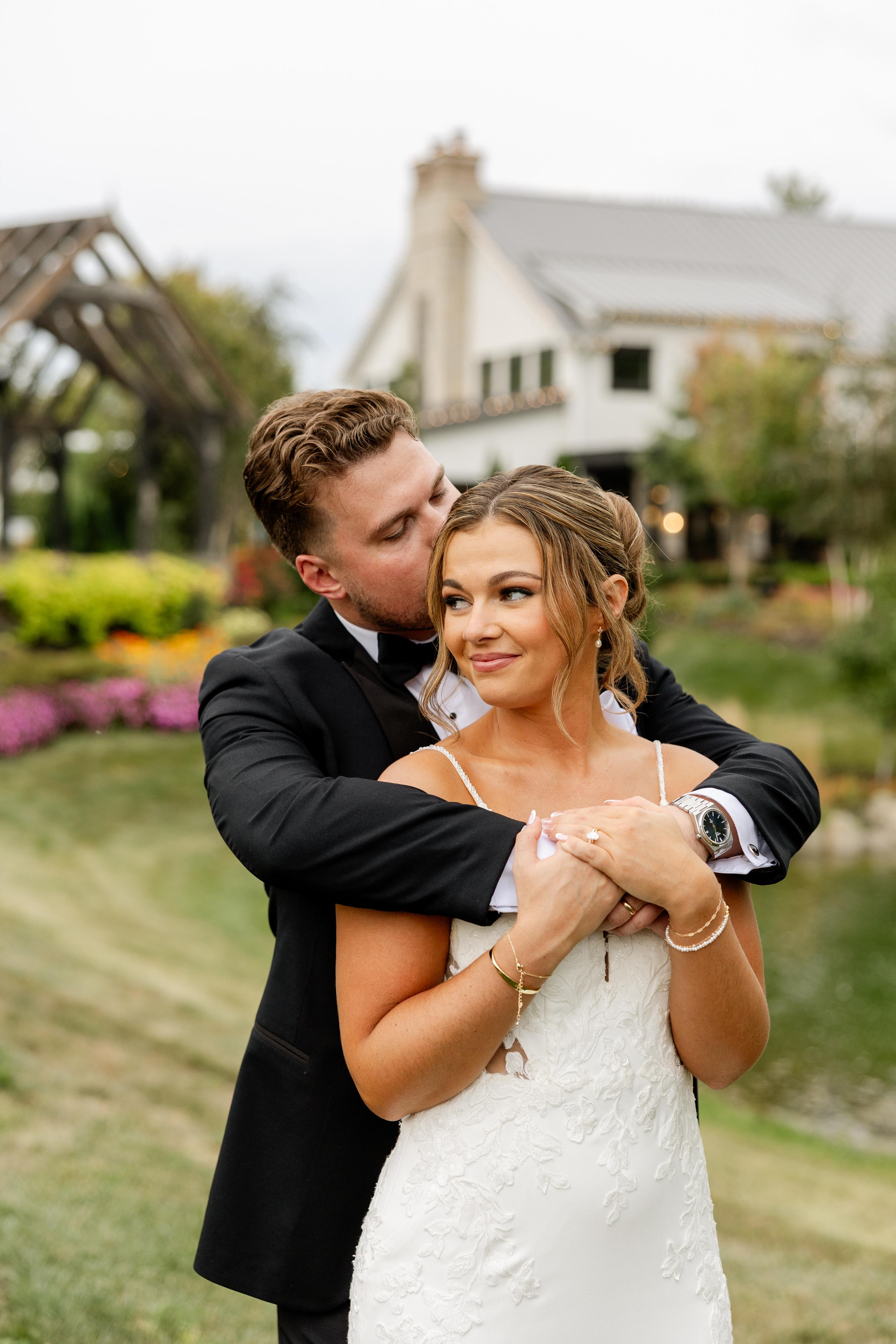 As a person who had never been glam before, Emily and Sarah made me super comfortable and had realistic expectations. THANK YOU for explaining why 18-inch extensions would be beneficial, and I am thankful for trusting you. My hair and makeup were freaking epic! I wanted old Hollywood Glam with smokey eyes and, being 48, requesting glowy skin instead of baked. Sarah made all my bridesmaids feel gorgeous with their makeup, and our hair was perfect! Most of my bridesmaids had been BM before, so they were expecting to feel insecure and not sexy. All five were so impressed they felt and looked beautiful. I have never been called "Stunning" before my wedding day. On that day, Emily and the team not only made me look stunning, but they also made me feel stunning. My hairstyle with the 18-inch clip extensions was done perfectly. My makeup lasted all night, and the glow that was used on my chest gave me the most beautiful glowing skin. Thank you so much! I haven't gotten any of my professional photos in yet. Here are a few from guests