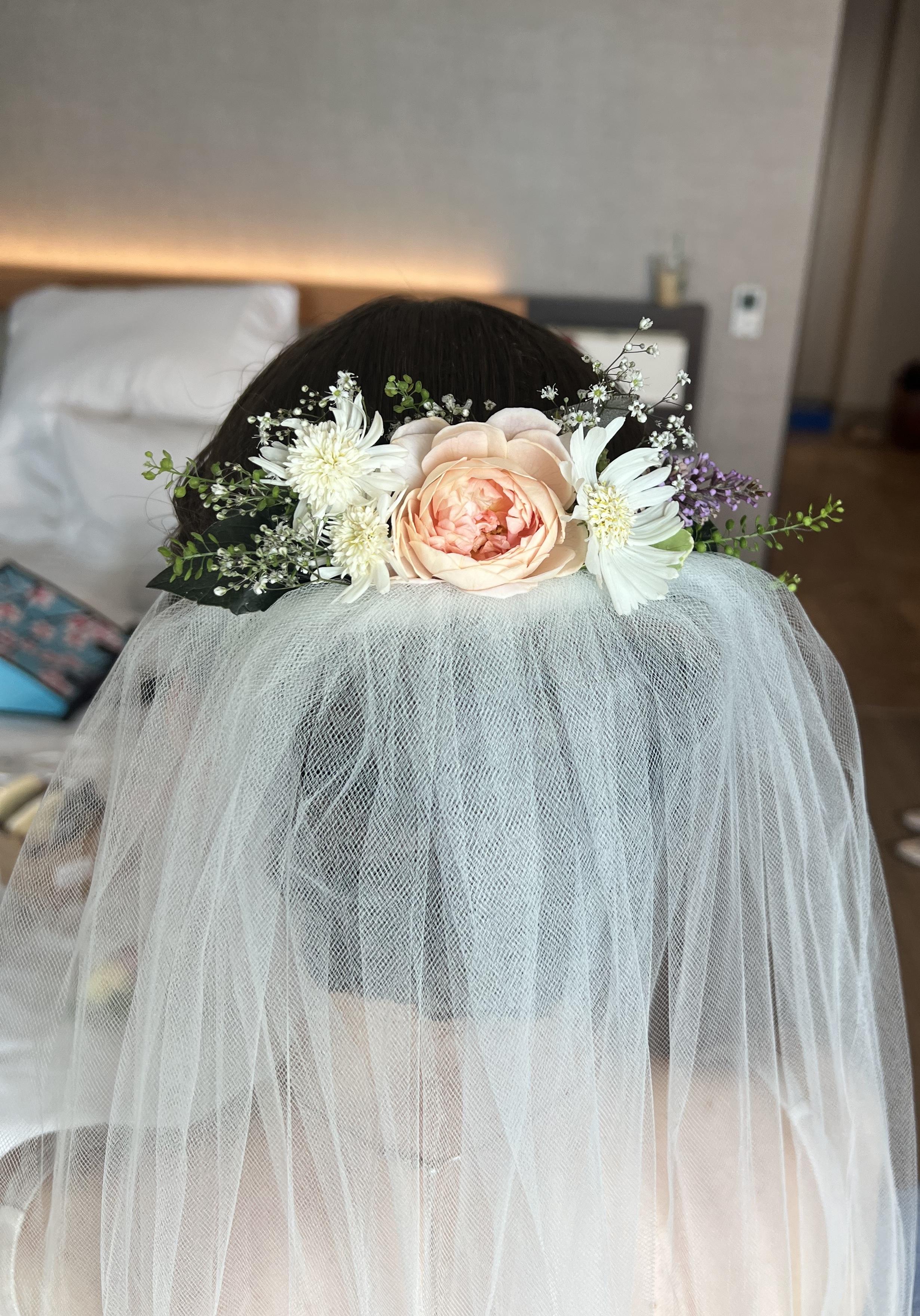 For our daughter's wedding, Maddie made a selection of STUNNINGLY beautiful hair combs with her fresh flowers and her artistic style. It was difficult to choose, but the winner was THE WINNER. !!! It was simple, stunning, tastefully artistic, and lasted throughout the outdoor wedding & reception fun. We were amazed. We would highly recommend Maddie for your fresh flower wedding decorations! (hmm... I wonder what terrific creation she could have made with her dried flowers?)