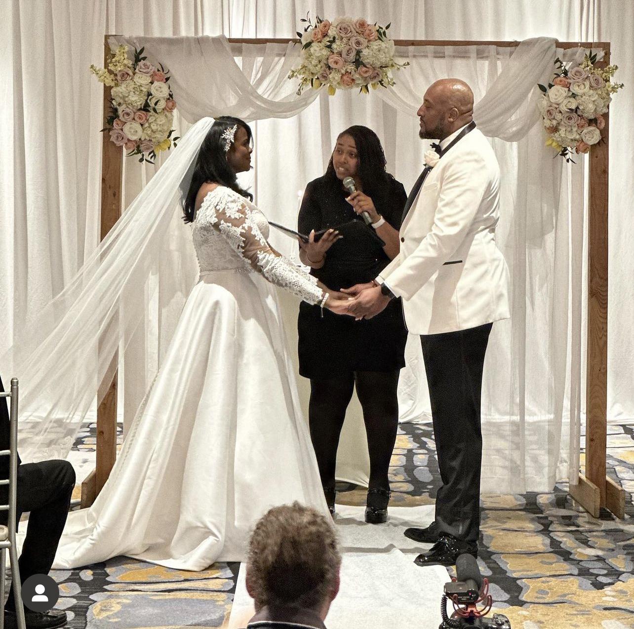 This review is long overdue! My husband and I had the wonderful Tiara officiate our wedding 04/20/2023, and she helped make our experience so enjoyable! Not only was she professional, but also compassionate, personable, and helped us with our vows when we were both too overwhelmed to speak. She gave our guests a beautiful explanation of our love for each other, and included a “couple therapy-esque” meeting to get to know us before the wedding, and ended in me having happy tears expressing my love towards my husband during such a stressful time. She gets a 10 out of 10 from us! Make sure you book her for your upcoming wedding!