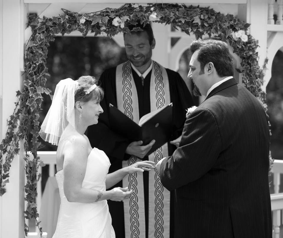 Ken was great! I had no idea what I wanted for my ceremony. Ken went through a ton of possibilities created a form to guide me and my now husband through the process. We missed our opportunity to connect due to my wedding party being late and we missed our opportunity to connect the day of the wedding, but he was waiting for us at the altar prepared to deliver his speech. After the ceremony he got our witnesses to sign marriage certificate and later filed it with the town