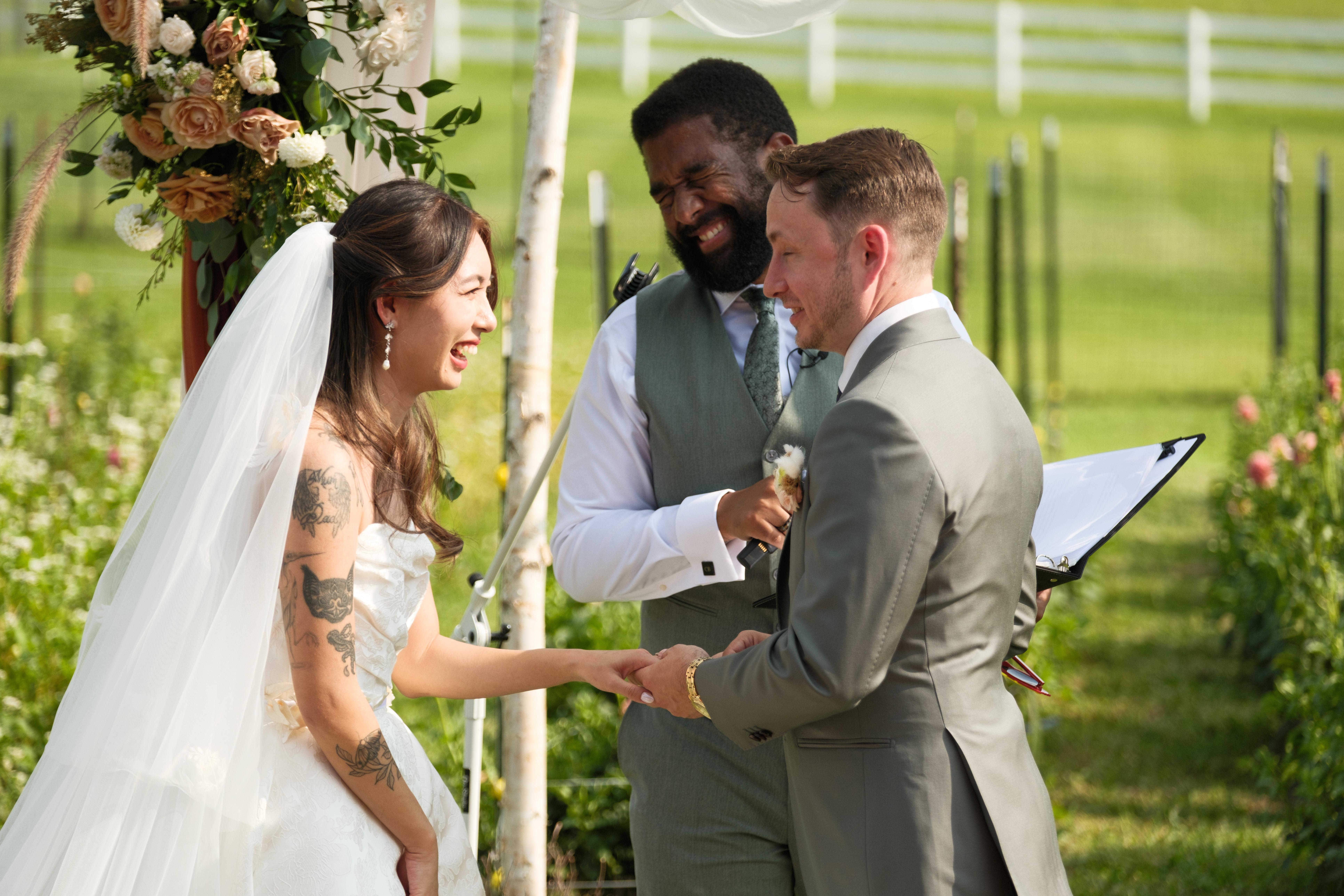 June of 2023 I officiated my first wedding and had so much fun, I decided to take this on and build a brand others and myself would love. Since then, I’ve officiated over 370 weddings and am still loving every minute of it.