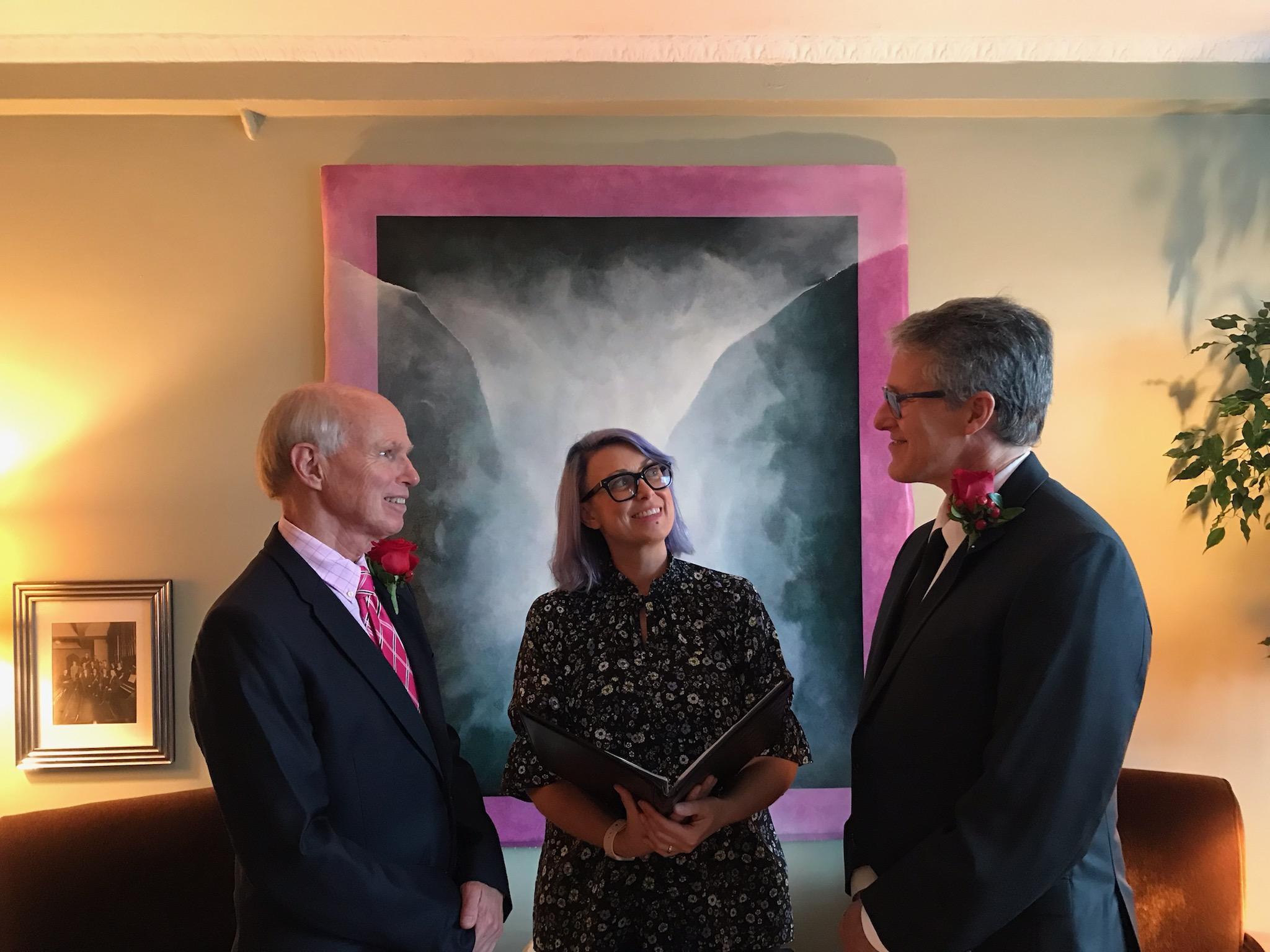 Our 2008 marriage ceremony was the best I’ve ever attended (I may be biased). My partner and I created a humorous and meaningful service that fit us perfectly. I want to be able to do the same for you. I am a social worker who is good at highlighting relationships and connections. I’m an attentive listener, and I promise you won’t feel like you’re in a therapy session when we work together. Unless you totally love therapy, in which case, sure, I’ll use my therapist voice. Social workers aren’t usually associated with humor, but I assure you, I am hilarious. I'm also calm, organized, thoughtful & fun.