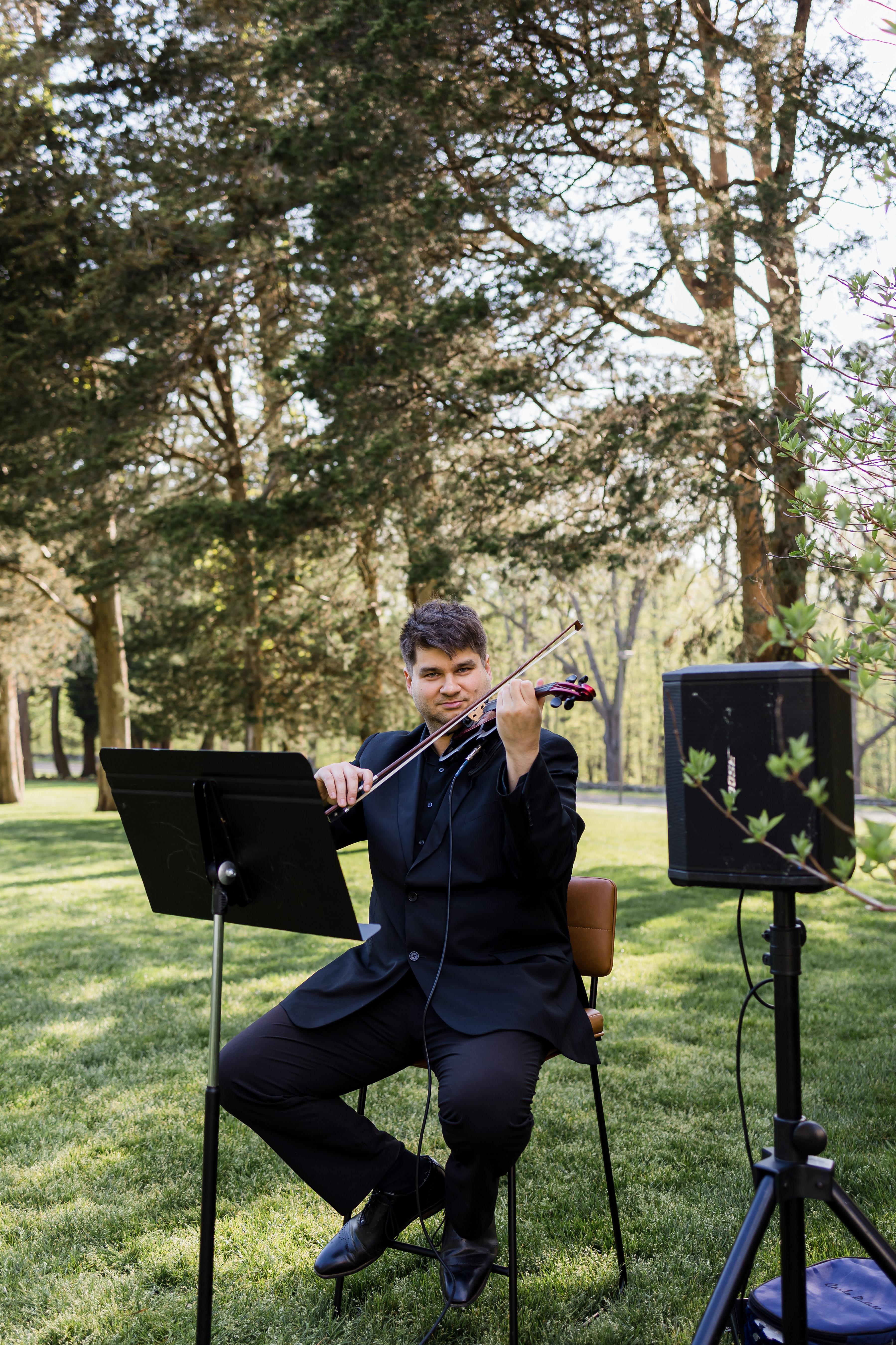 I play violin at weddings. I have over 500 songs from all genres and the right equipment to provide a seamless and memorable experience. I enjoy playing for people and pride myself at doing a great job for couples and their guests.
