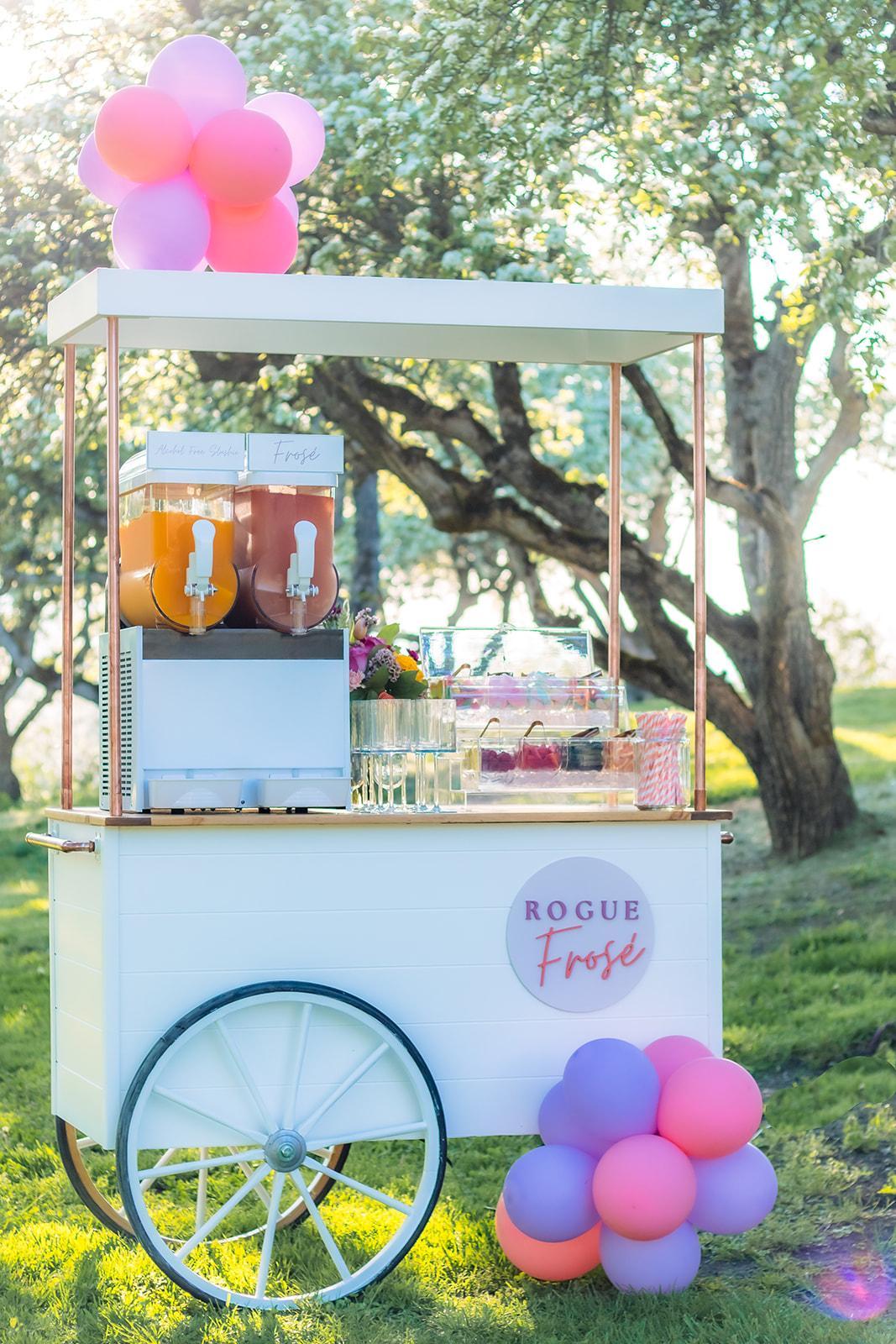 As a multi-business owner in the event space, I am very familiar with how hard it is to find high quality, affordable, unique options for your event. Rogue Frosé is a full mobile bar experience with an beautiful custom mobile cart to bring you delicious frozen beverages with our without alcohol. We also offer full bar service from wine, beer, cider, champagne toasts and signature cocktails. We want to be your all inclusive go to bar service for your event and bring a unique, professional, friendly, fun and boujee experience.