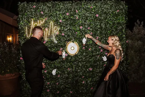 Our Living Champagne Wall brings a unique interactive toast to life for your guests. Great for a welcome drink and greeting your guests. Later the doorbell is removed and it becomes a photo backdrop for you to capture memories with all of your guests. Only $200, that is less than a rental of just a photo backdrop much less a unique interactive living champagne wall that then will become a photo backdrop to collect memories. Note- can be any drink not just champagne