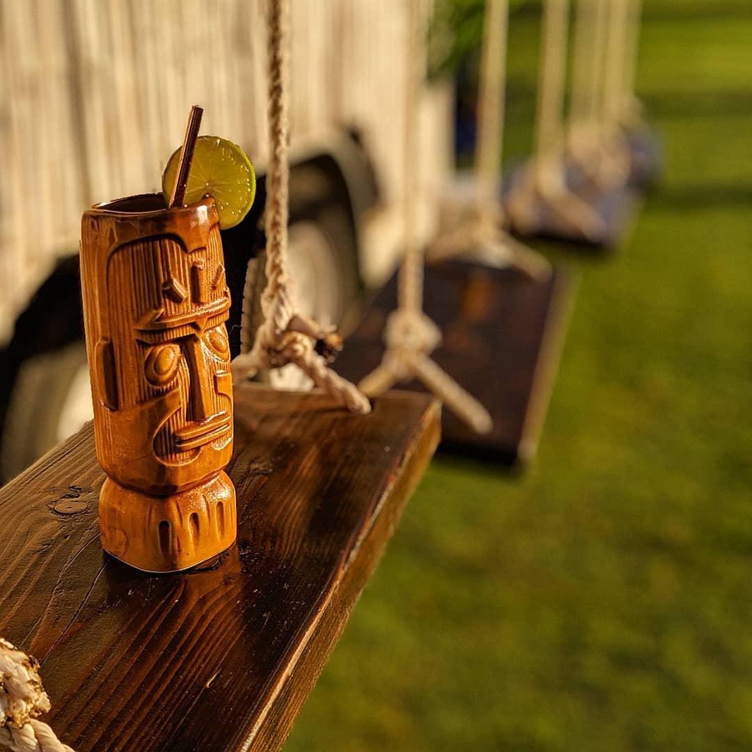 Transport back to vintage Hawaii at Twisted Tiki - Maui's Mobile Tiki Bar. Feel the ocean breeze as you enjoy your Tiki Cocktail handcrafted by our delightful bartenders. Beautiful to the eye and even more so to the mouth, these cocktails are made with fresh fruit and garnishes. Enjoy your favorite Tiki Tai on Twisted Tiki's beloved rope swings! The bar is designed with whitewashed driftwood, dark varnished wood bar-tops, and vintage glass floats.