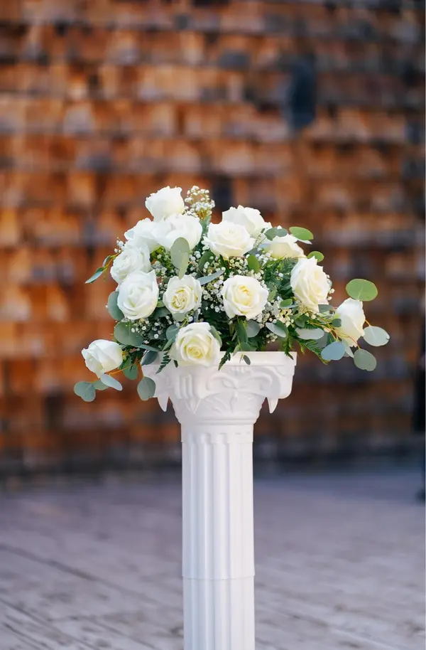 We used Katy from Back Porch Petals for our wedding flowers and she blew it out of the water!!! She arranged, delivered, and set up my bridal bouquet, bridesmaids bouquets, corsages, boutonnieres, centerpieces (table runners of eucalyptus and babies breath with scattered bud vases with white roses), and 2 altar arrangements. We could not be any happier with absolutely all of it!! I got so many compliments on the florals all night and how great the reception smelled because of the florals and eucalyptus. Additionally, Katy was awesome to work with. She was very sweet, prompt with responses, and she put so much time and consideration into her quote presentations; I could immediately tell we chose the right small business to work with when we first inquired with her. 10/10 recommend Back Porch Petals!!! Photos courtesy of Lang at Wandering Wolf Photography