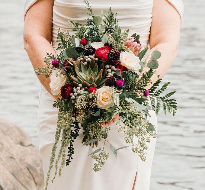 I loved everything about working with Florwegian! Megan was able to bring my vision to life based on my favorite colors, love of succulents and desire for a hair clip with a succulent. Everyone complimented us on our flowers and our photographer said my bouquet was the best she has ever seen/photographed. Megan was great to work with! She was very knowledgeable about flowers/greens that would work well for our vision/season and had so many varieties I have never seen before. I highly recommend Florwegian base on my experience first as a wedding attendee and then as a bride.