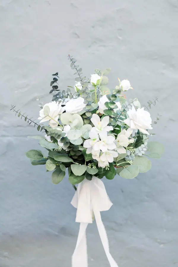 With pure class and magnificence, jump from the traditional to modern luxurious charm, this collection is an absolute showstopper, Including everything you will need from ceremony to reception. Featuring a color palette of whites and greens with a mix of white roses, delphiniums, baby's breaths, mini ranunculus, orchids, green Italian ruscus, and eucalyptus branches. Specially welcome your guests with a luxurious welcome sign, a seating chart set, and a glass of champagne.