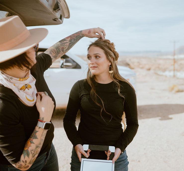 With over a decade of experience in the wedding hair and makeup industry, I now travel to remote and unconventional locations to prepare my couples for their intimate and unconventional love story. I'm thrilled to offer a luxury service, no matter how remote or distant or small your love story might be. I specialize in adventure elopement, and micro-destination weddings. I offer roaming concierge services to ensure you feel beautiful and cared for all along the way.