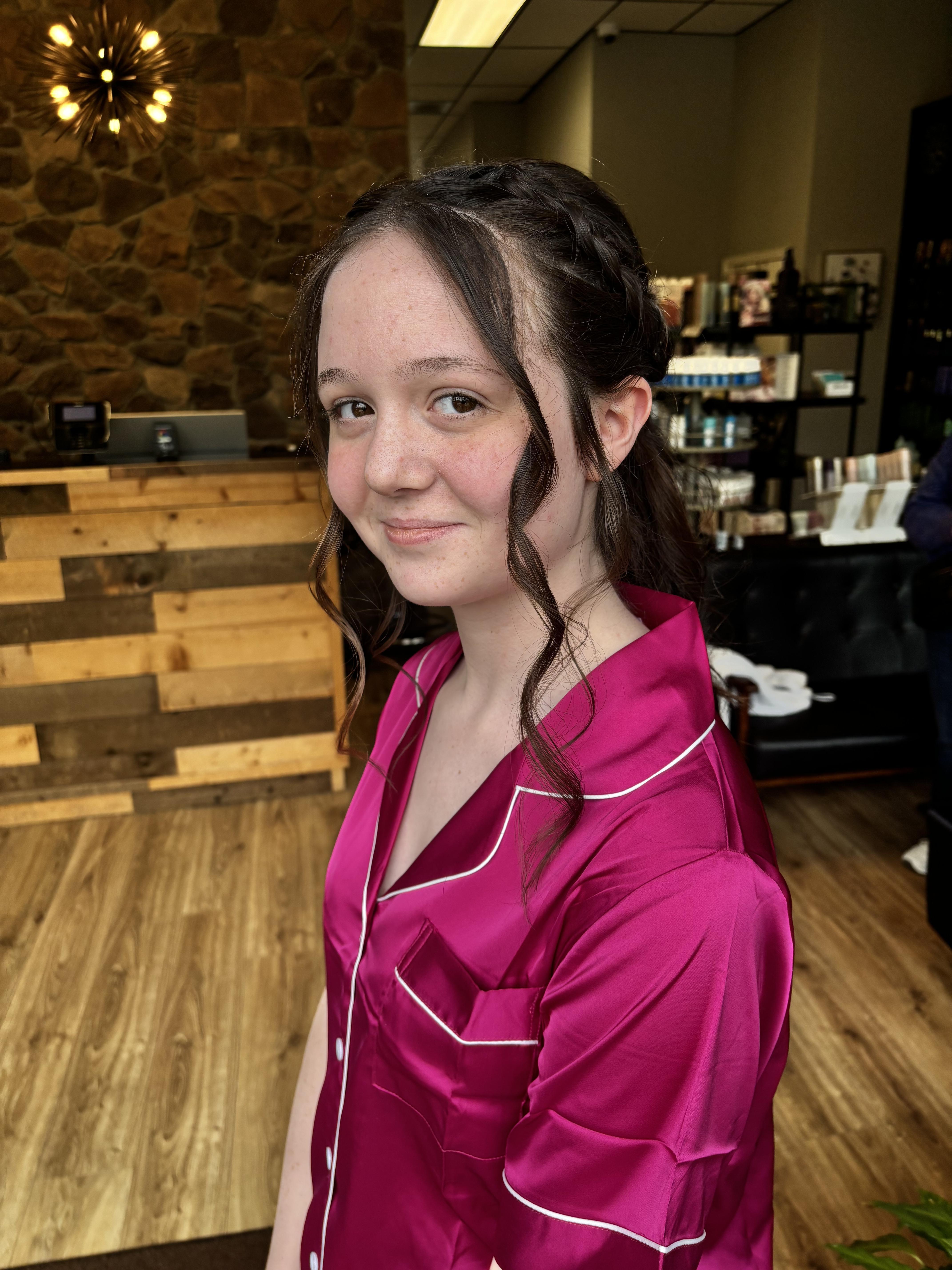 Maddy was on time, professional and able to knock out 10 hair styles in a short amount of time. She is great with all textures of hair and made everyone feel beautiful and comfortable. Everyone in our wedding party loved what she did with her hair.