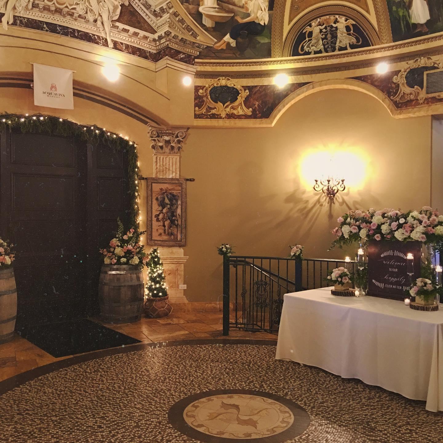 Our breathtaking Winery Atrium with high ceilings and astonishing architecture with hand-painted frescos is a one-of-a-kind space for your special day. Each wedding at Acquaviva is as delightful and enchanting as the next. With a maximum capacity of 230 guests, we strive for intimacy and creativity. We welcome special requests and work closely with our clients to ensure they have a wedding that exceeds their expectations.