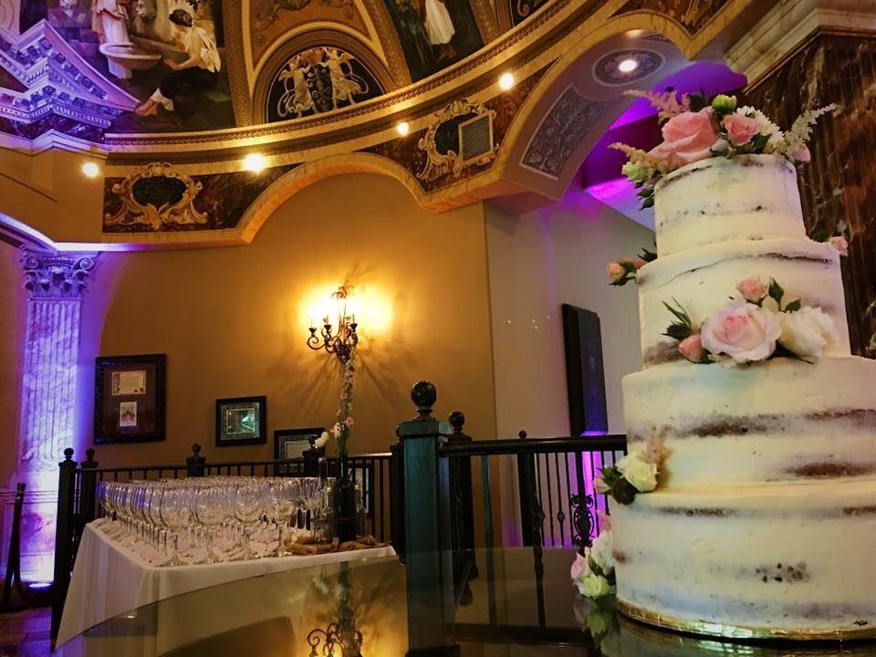 Dimmable Lights Handicapped Accessible Hand-Painted Atrium Dome and Art Air-Conditioning and Heat Access to a Two Level Outdoor Patio Space Space for Dancing Large Full Service Bar Woodfired Pizza Oven for an Optional Late Night Snack Add-on Indoor Ceremony Space Power Outlets for Music and Up-lighting Chairs, Tables, Place Settings, and Table Linens Dessert Table with Included Desserts