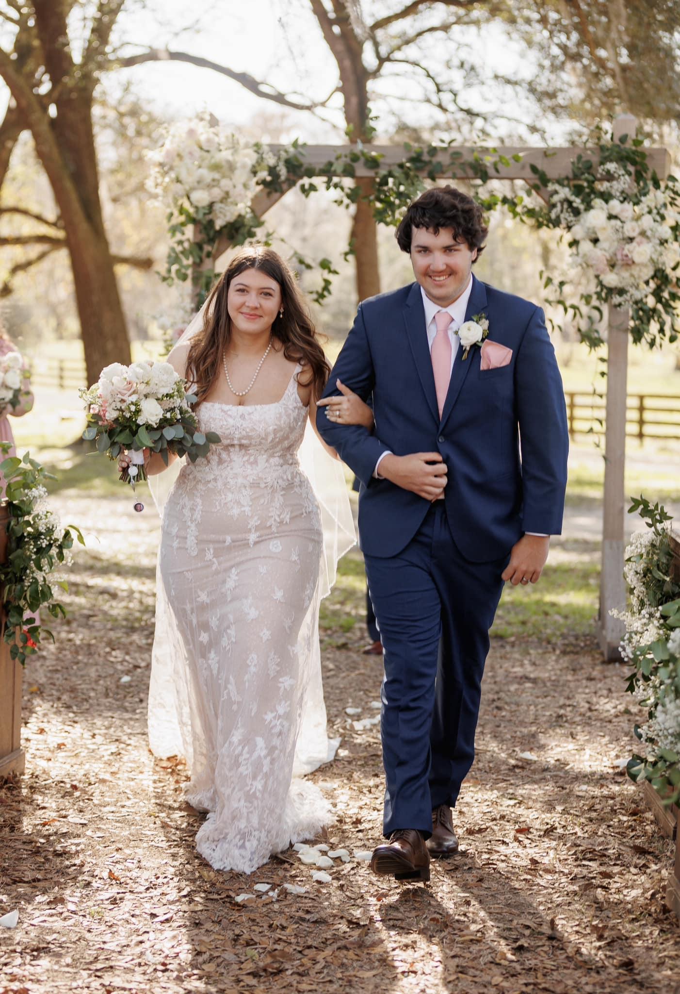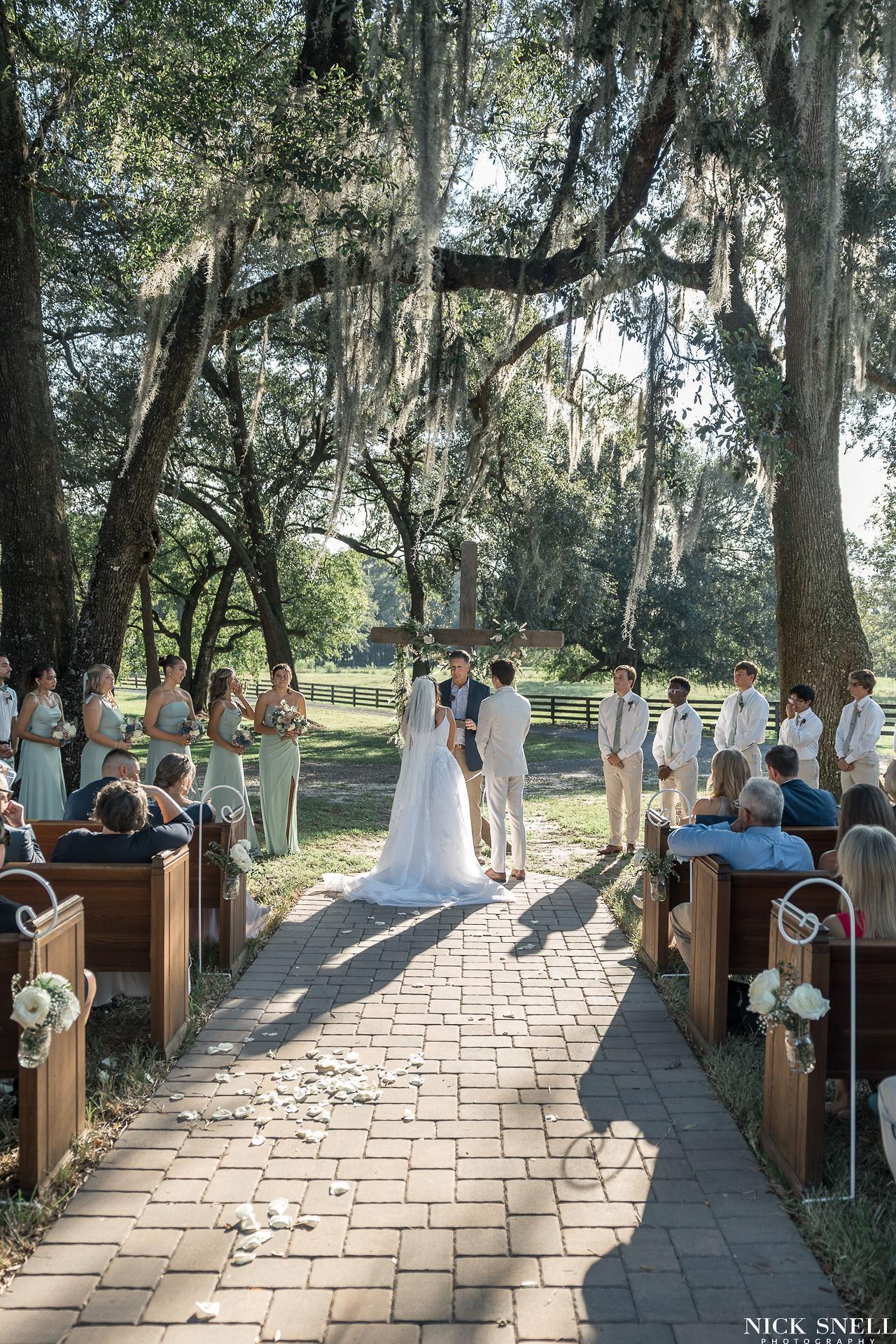 Ceremony under the oak trees.