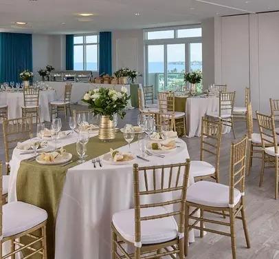 In the heart of charm with ocean views. The Biscayne Ballroom offers stunning views of Biscayne Bay, complemented by a charming outdoor terrace.