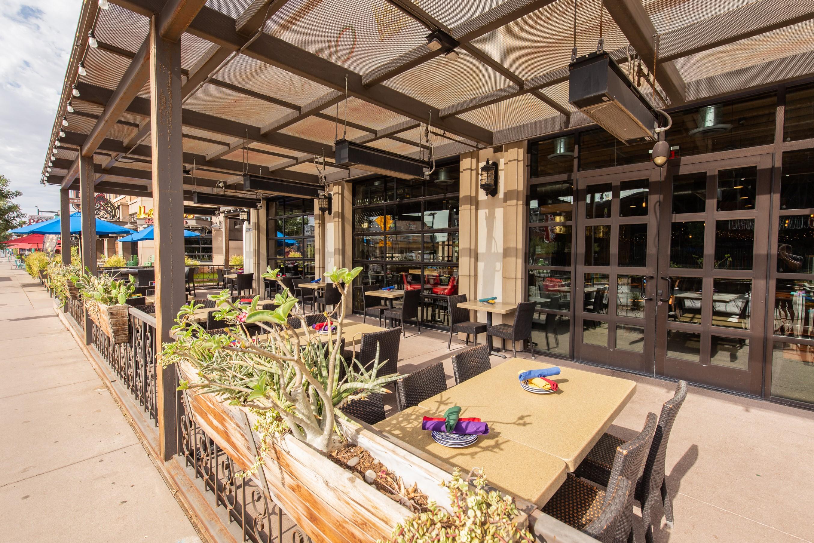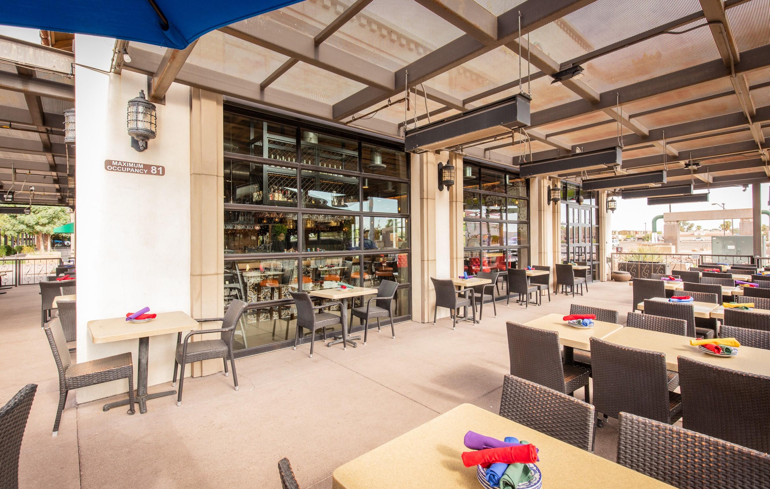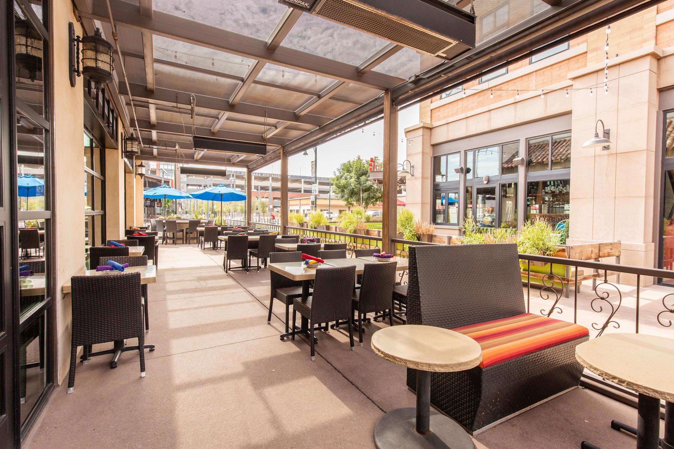The patio is a great location to enjoy the beautiful Arizona weather. This space is comfortable all year long with shade roof structures, space heaters and/or misters.