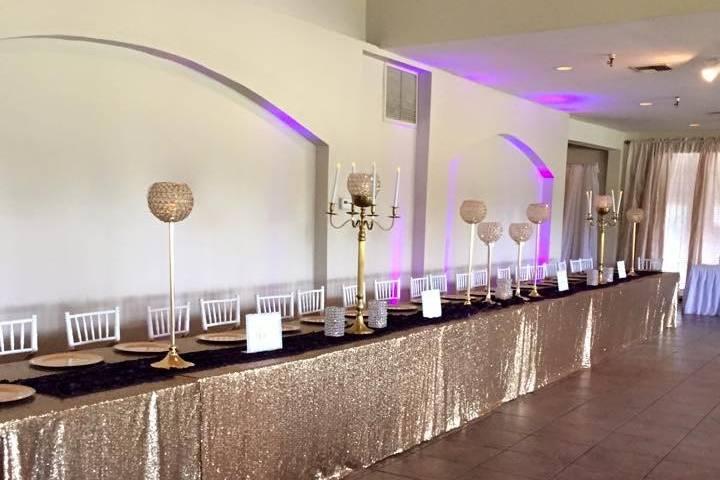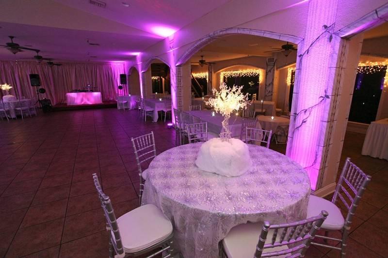 - Wedding planning services. - Bride's dressing area. - Dance floor. - Podium and/or stage. - Coat check room. - Tables and chairs provided. - Linens, silverware, glassware provided. - Outdoor lighting. - Day-of coordinator. - Champagne toast. - Full kitchen facilities.