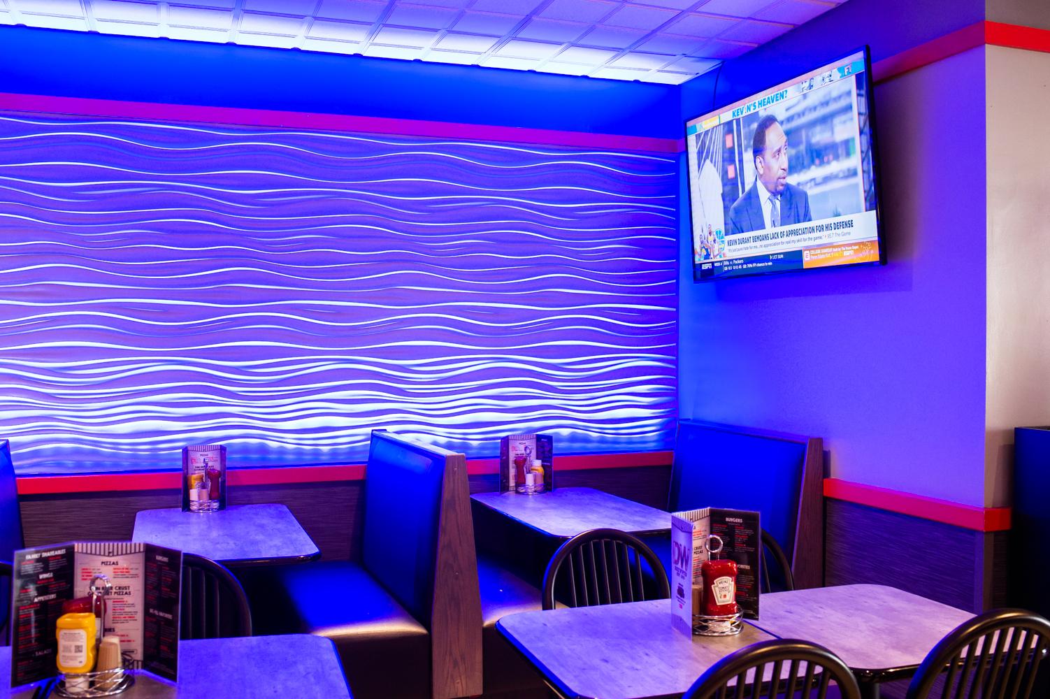 -Wall mounted projection screens -Over lane and over bar TVs -Studio surround sound and music system -High top tables or tables and chairs for a seated meal -Bowling, shoes & Boston Bowl branded socks