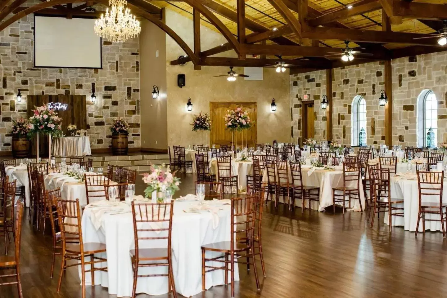 Maintaining a rustic elegance, we can provide a beautiful setting for any of your events. We can accommodate small to large groups as indoor seating for up to 320 guests is available. We have unique amenities like private bridal and groom suites, a private bridal entrance, and an onsite ceremony area for weddings. We provide a custom bar and a warming kitchen with an indoor & outdoor PA system. You can choose from any of our numerous vendors, or you can also bring in your own to create a unique experience. Our large wooden dance floor and the covered patio will enhance your wedding reception or other special events that you are celebrating.