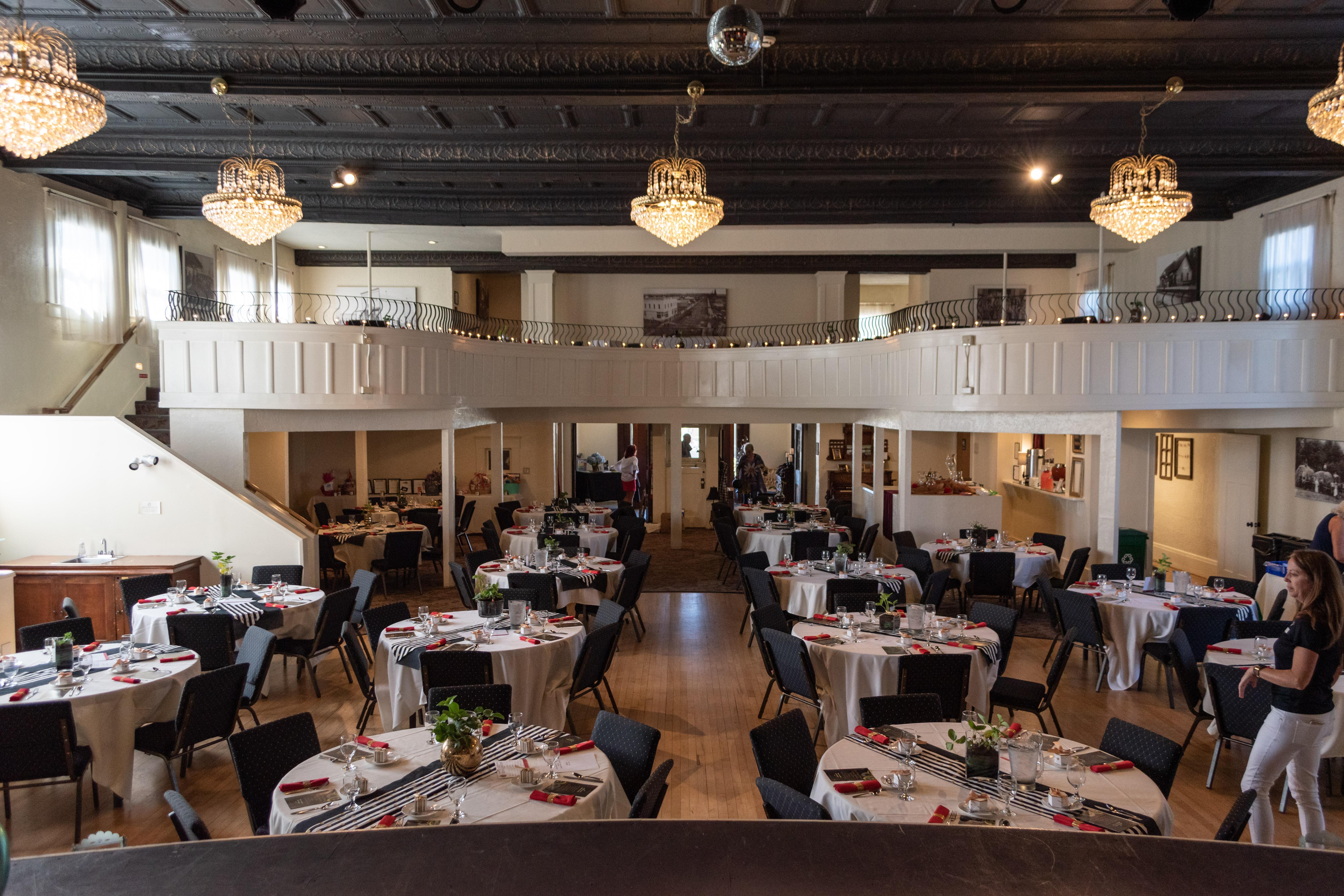 This space features the main ballroom floor with ADA accessibility with plenty of room to host your entire event. Balcony and lower level accessibly by stairs only.