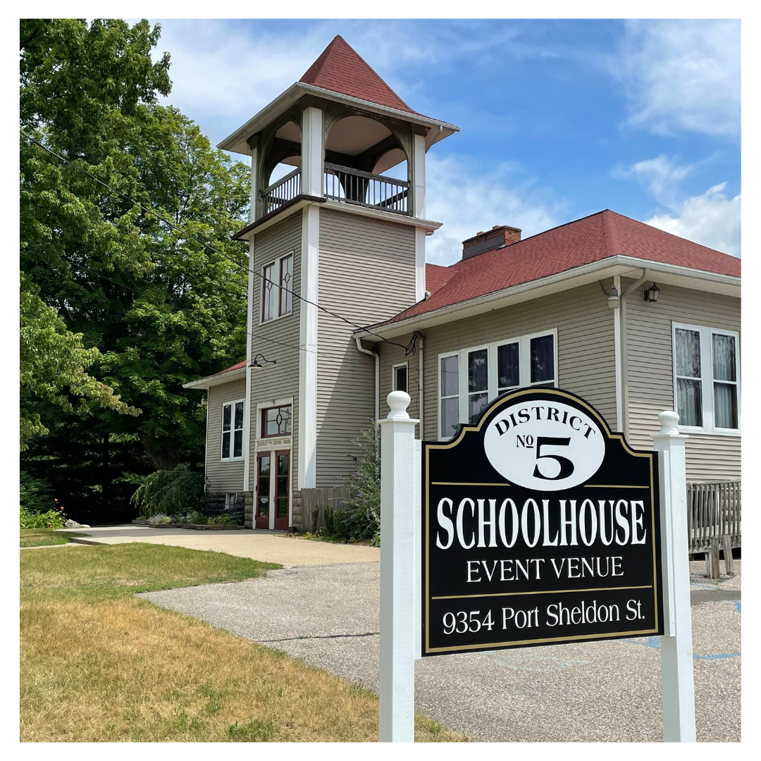 A charming set of indoor and outdoor event spaces invite you to come and design the wedding you have always dreamed of. With two large garden areas available, it’s an easy task to find a tranquil spot to say “I do”. Lush vegetation and towering trees surround the manicured lawns, a welcoming prospect beneath the soaring Michigan sky. Inside of the District 5 Schoolhouse, a stunning set of spaces await you. Boasting many of its original structural elements, the building maintains much of its vintage charm. The distinctive wooden floors help to create a warm and inviting ambiance that makes one feel relaxed and at home. There is room for 180 of your guests with additional space left over for a buffet service area and dancefloor. Get-ready rooms are also located inside and provide a private place for you and your entourage to prepare in. Two decks extend from the house and make for an idyllic social area during festive events.