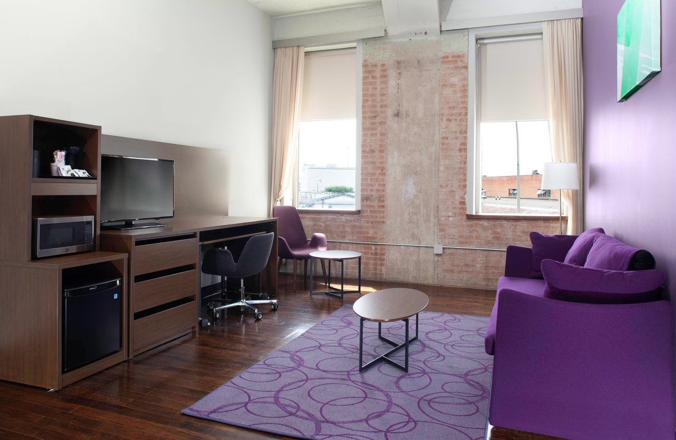 - 2 Queen beds - Private Sofa bed, Living/sitting area - Mini Fridge - Microwave - Coffee/tea maker - Hair dryer - Iron and Ironing board - Windows, floor to ceiling