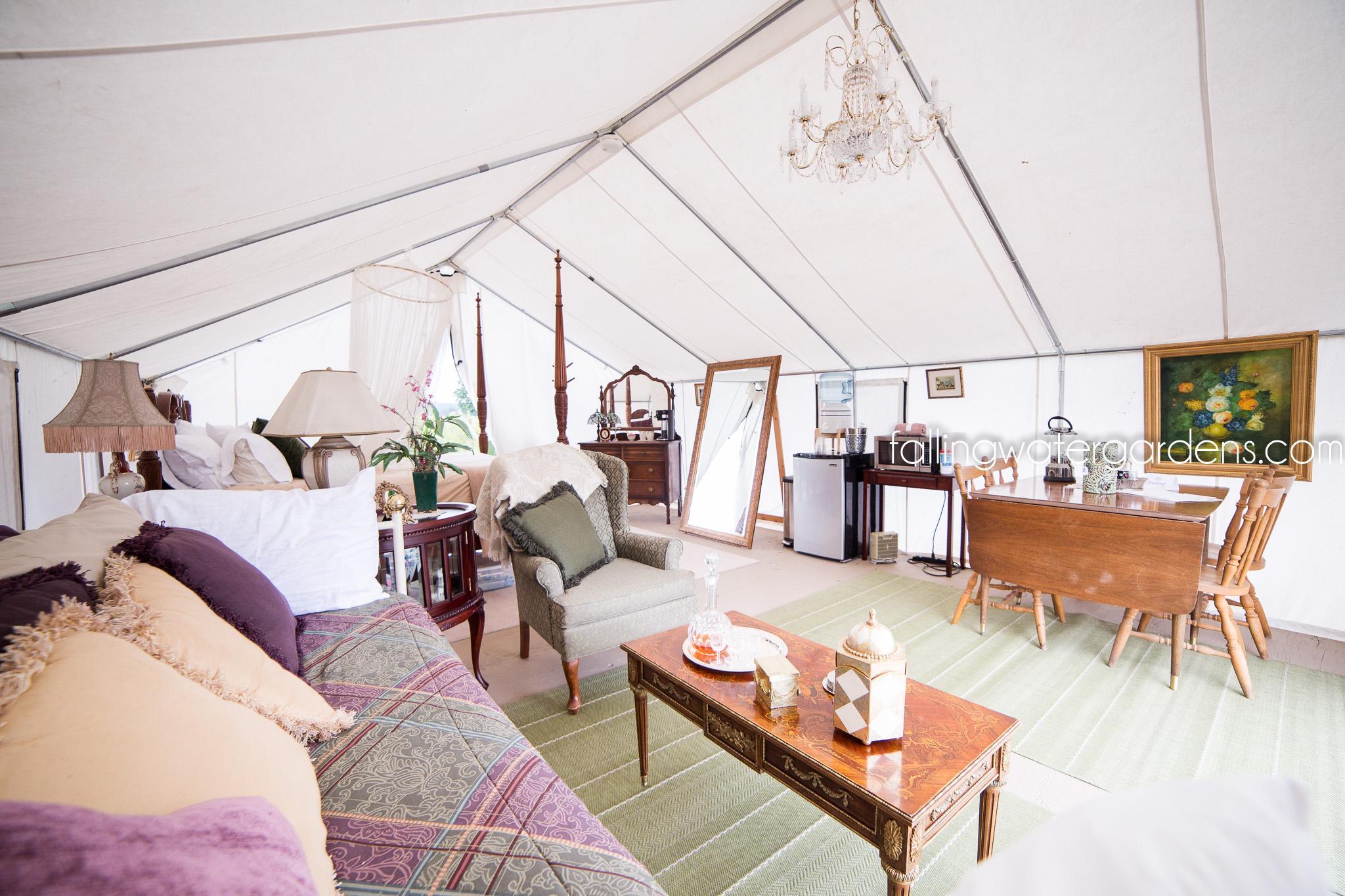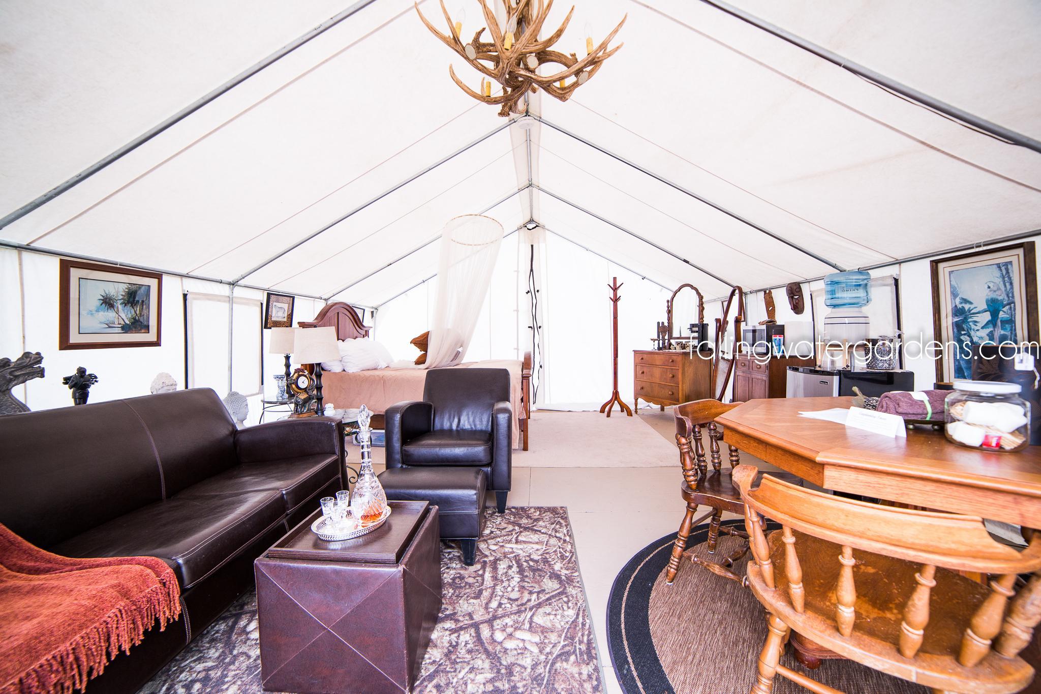 - Glamping tents with power and mini fridges