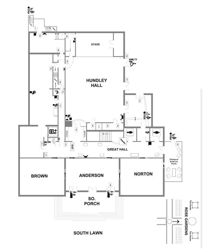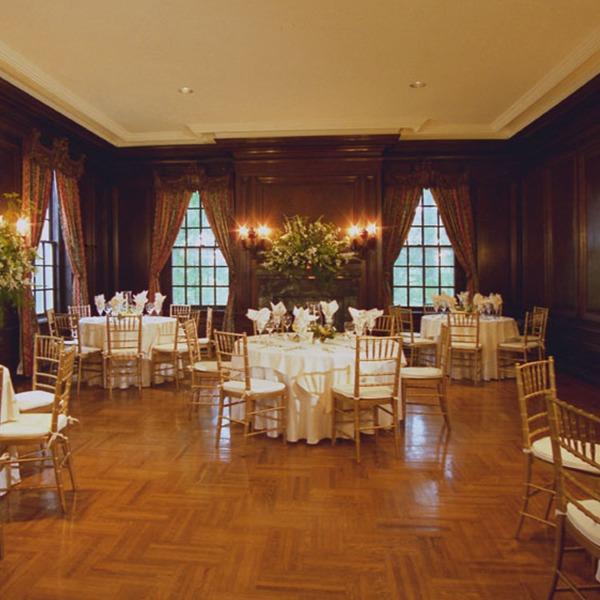 Gardencourt offers flexible and luxurious event space across its first floor and extensive grounds. Indoors, the main floor features over four thousand square feet defined by exquisite, rich woodwork and warm marble fireplaces, creating an intimate, sophisticated atmosphere. High ceilings and a dramatic carved grand staircase provide a magnificent focal point for your reception and stunning photo opportunities. Outdoors, the beautiful fourteen-acre estate features breathtaking, manicured gardens. Here, you will find formal rose gardens, a stately colonnade, and charming arbors designed by the renowned Olmsted Brothers, providing an idyllic, timeless setting for warmer-season events.