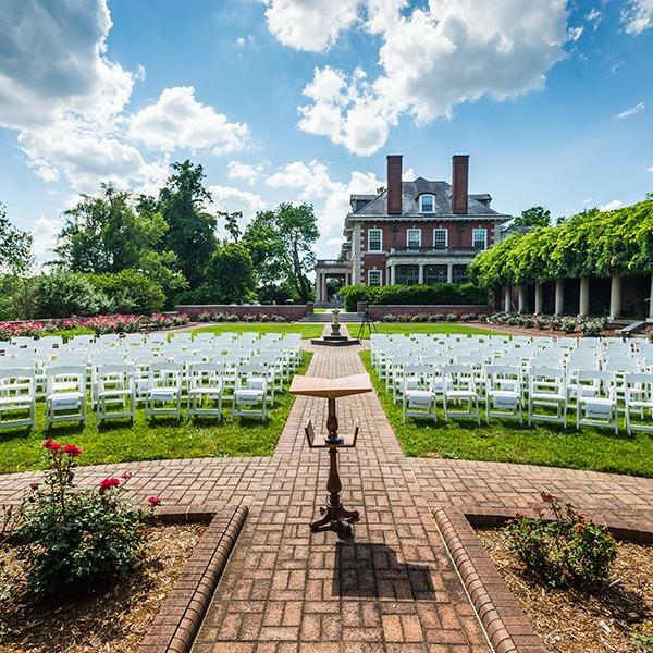 As Louisville’s premiere wedding venue, Gardencourt offers an unrivaled historic backdrop for your entire celebration. This majestic 1906 Beaux Arts home, listed on the National Register of Historic Places, provides a seamless blend of indoor elegance and natural outdoor beauty. The luxurious first floor features rich woodwork and a carved grand staircase, perfect for a sophisticated reception. Outside, the fourteen-acre estate, which overlooks Cherokee Park, boasts formal rose gardens, a colonnade, and arbors designed by the renowned Olmsted Brothers, offering a breathtaking alfresco setting for ceremonies and cocktail hours.