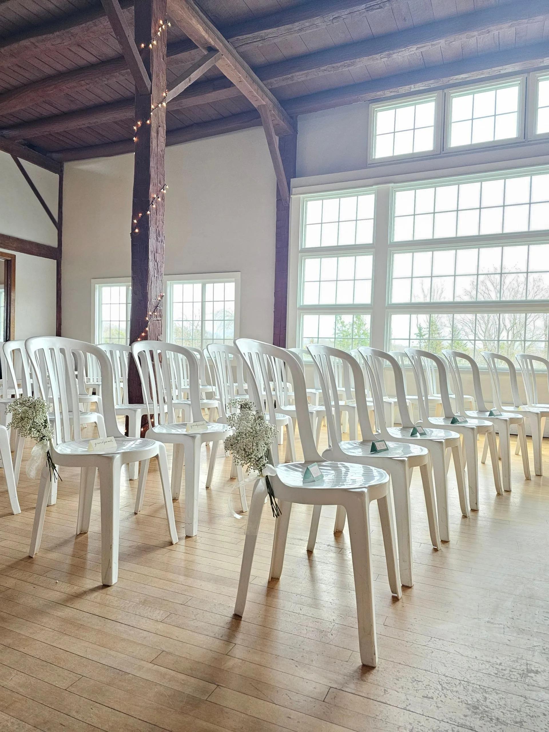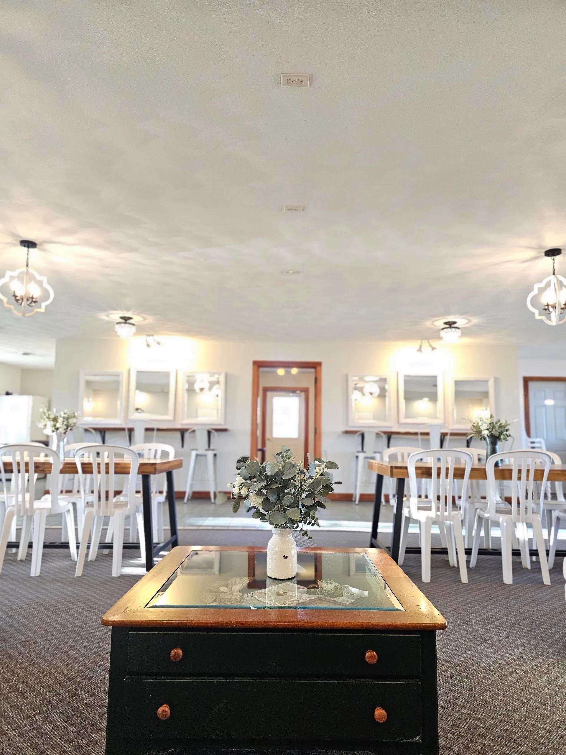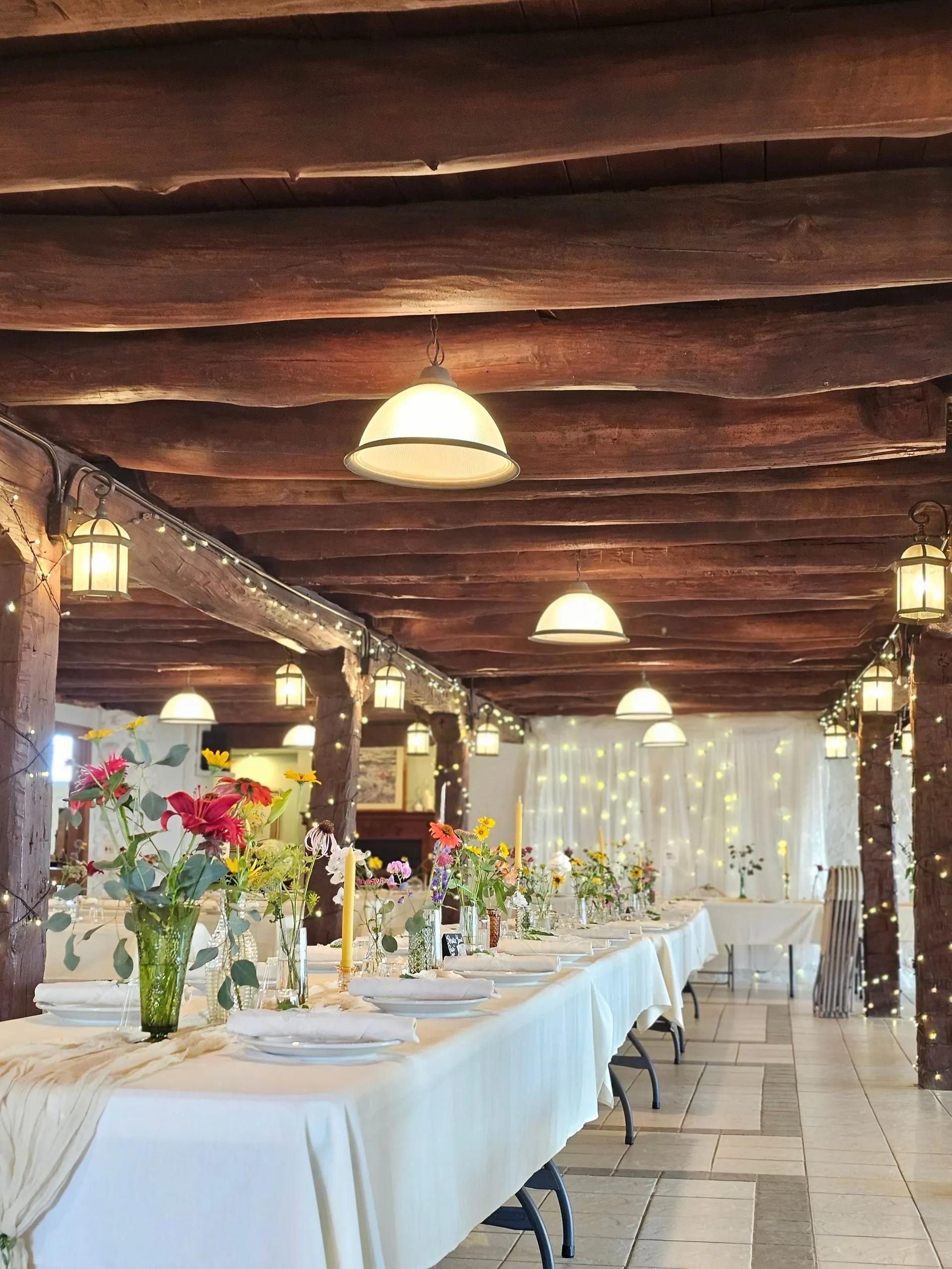 The Upper Barn is the heartbeat of your celebration, featuring a magnificent hayloft with 35-foot ceilings and romantic string lighting. This spacious area is purpose-built for movement, equipped with a dedicated dance floor, a stage for live bands or DJs, and high-quality speakers. Large windows frame stunning views of the onsite ponds, while the open-air feel captures the essence of a traditional farm wedding. It serves as a lively reception hub or a charming indoor chapel alternative, ensuring your party continues regardless of the weather.