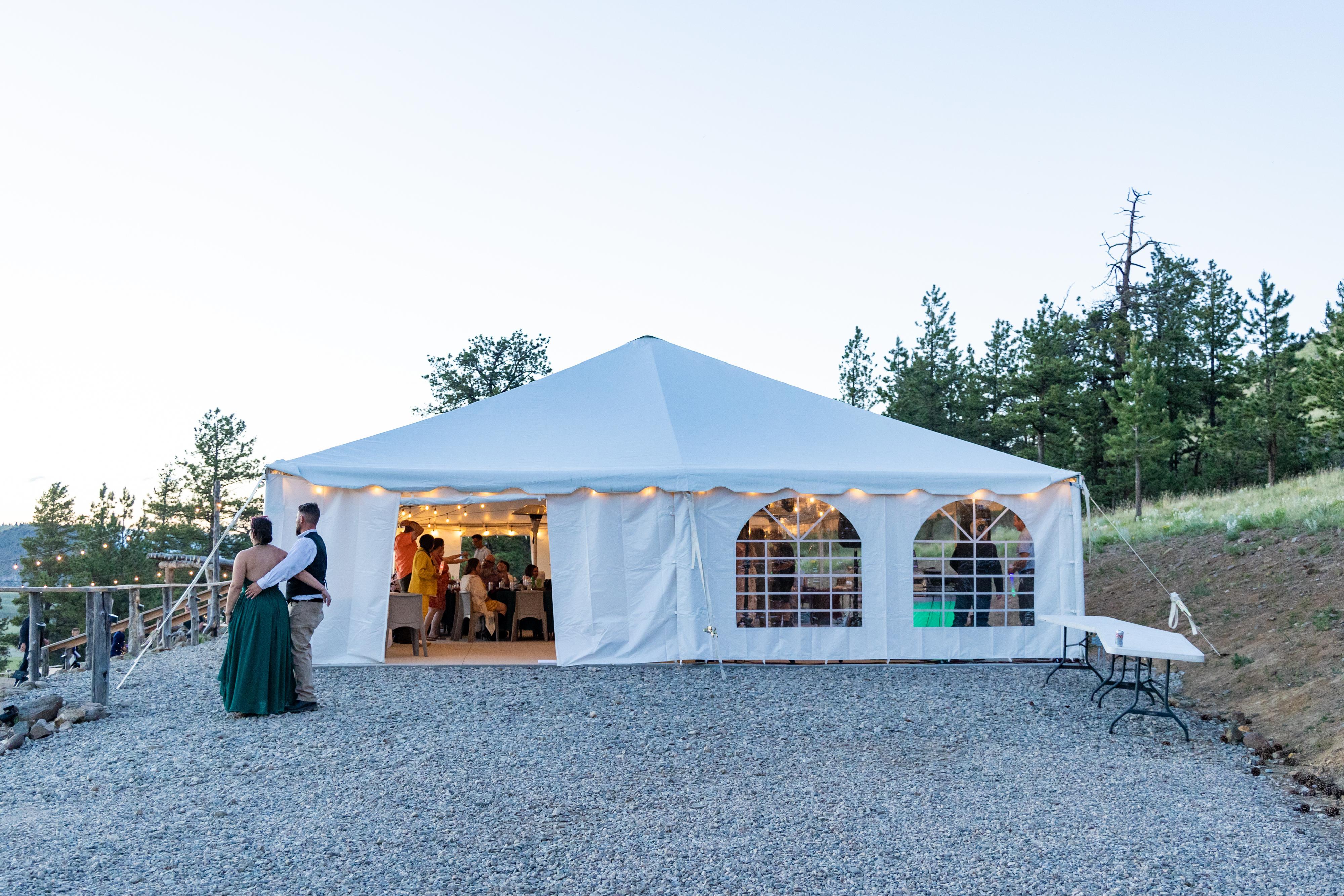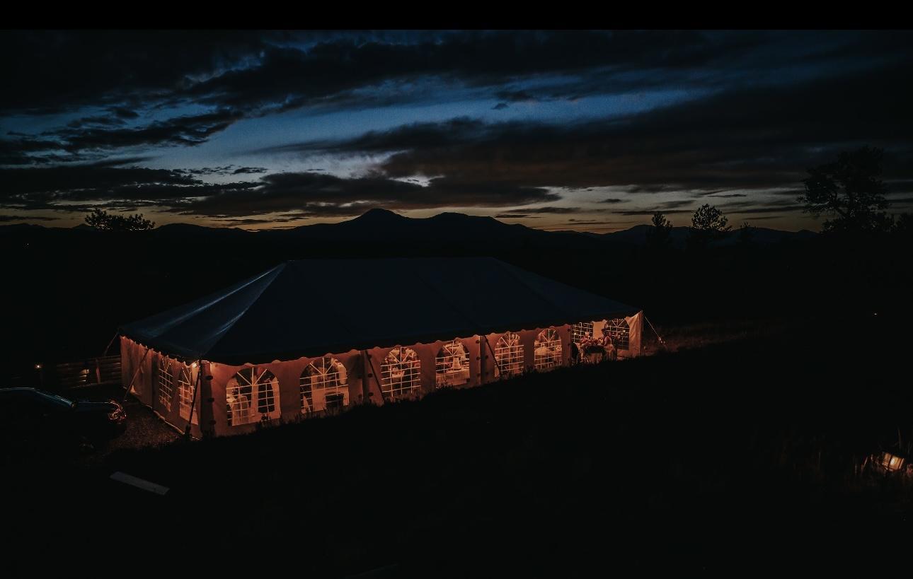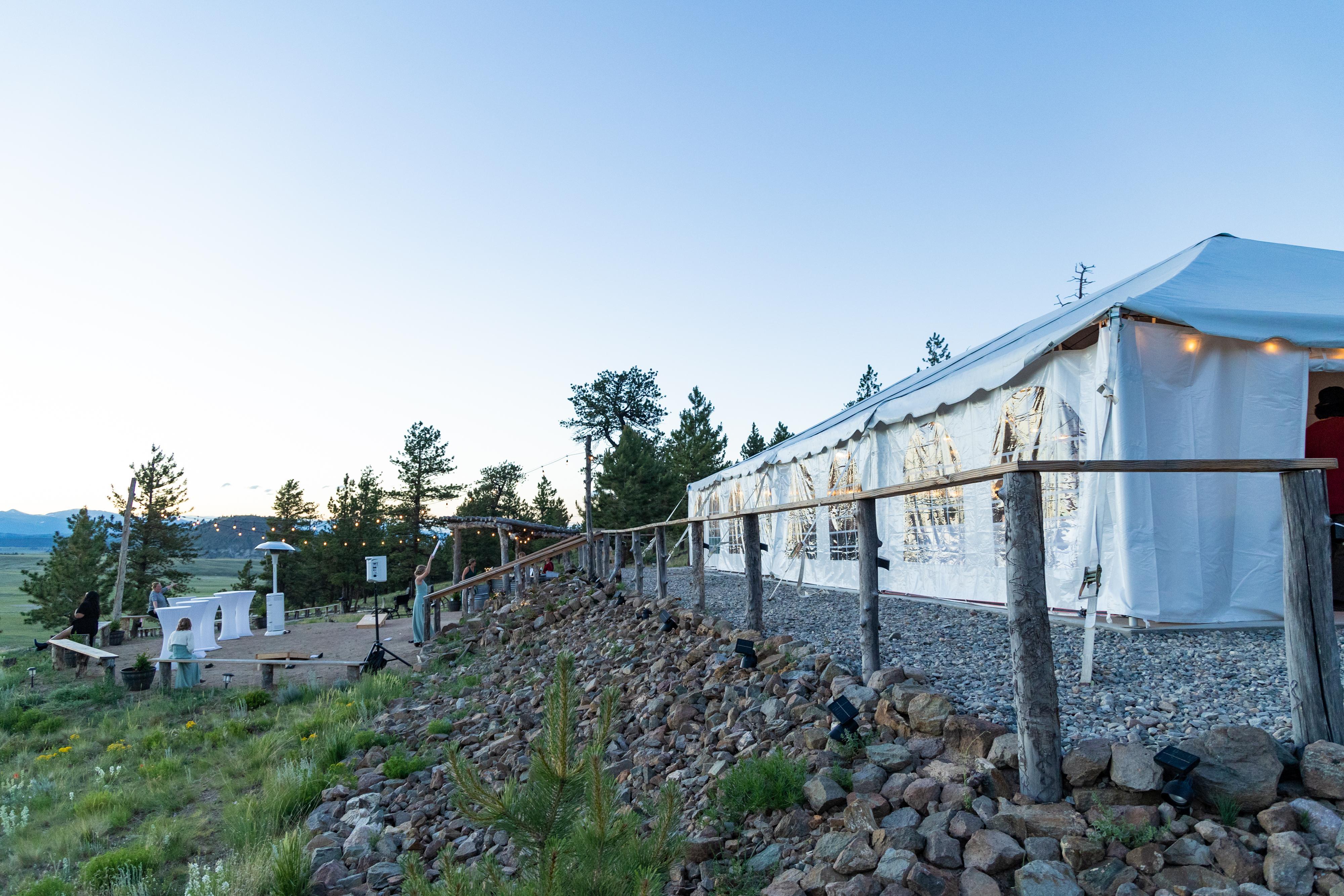 This incredible property is tucked away in the heart of the Rocky Mountains at an elevation of 9,200 feet, providing a remarkable backdrop for nuptial occasions. Couples who choose to celebrate their day here can expect breathtaking scenery and a plethora of options for unforgettable wedding pictures. You can enjoy your ceremony on the grounds, allowing guests to appreciate the views. Large reception tent allows you to continue the celebration in the great outdoors while staying comfortable.
