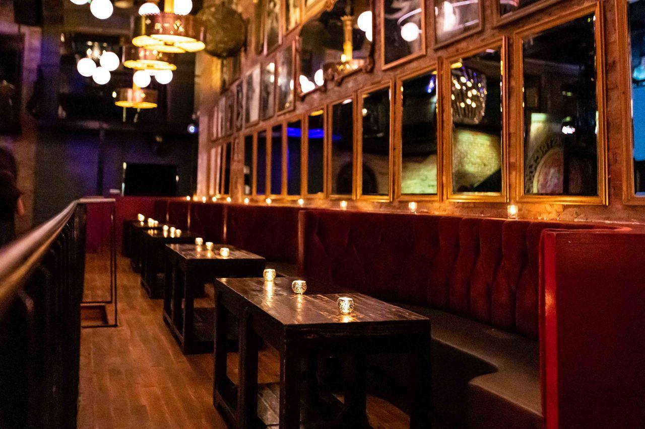 A semi-private space overlooking our first floor parlay. This space features plush lounge seating and a private bar! The space is totally customizable and can even accommodate a seated dinner for up to 34 of your closest friends.