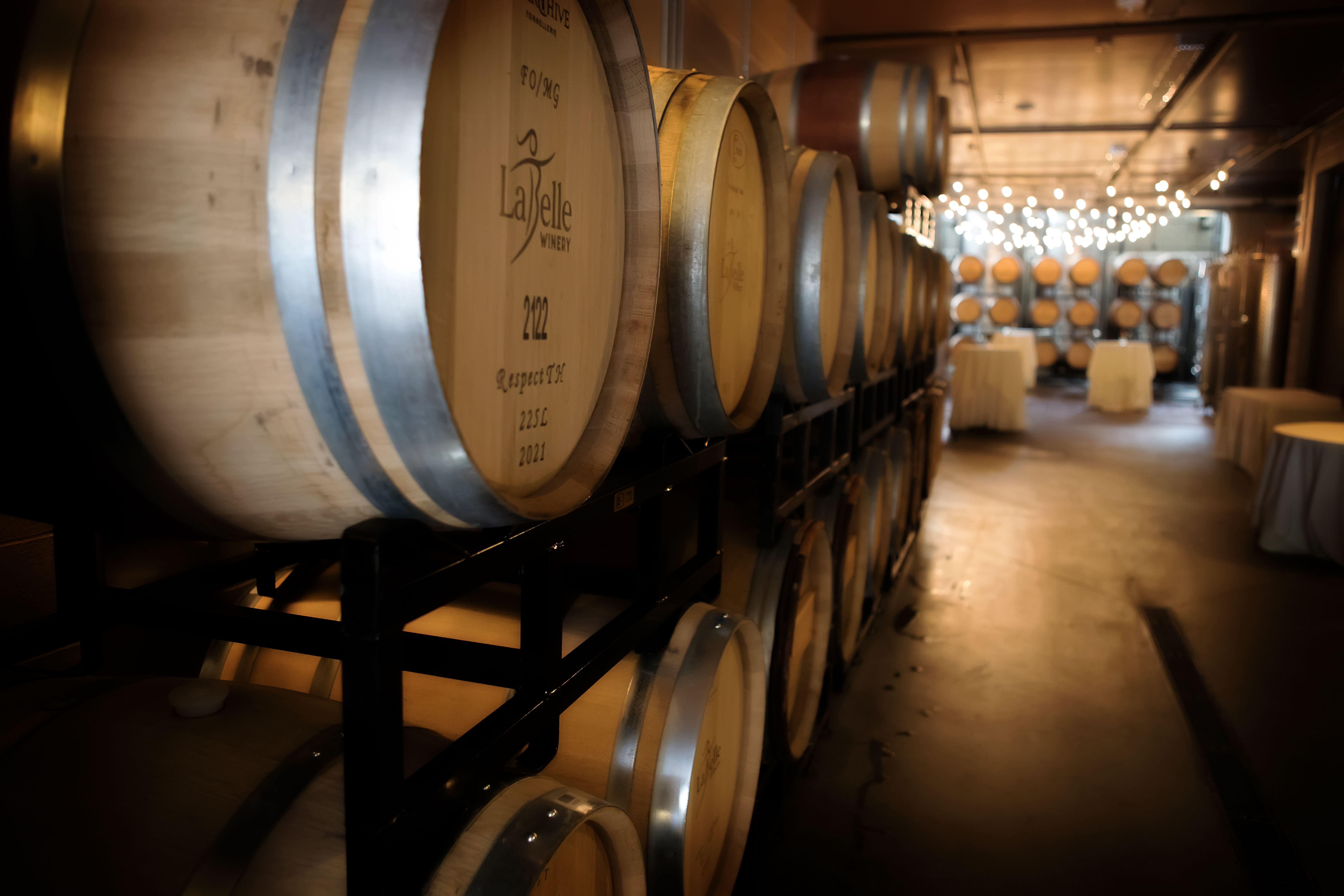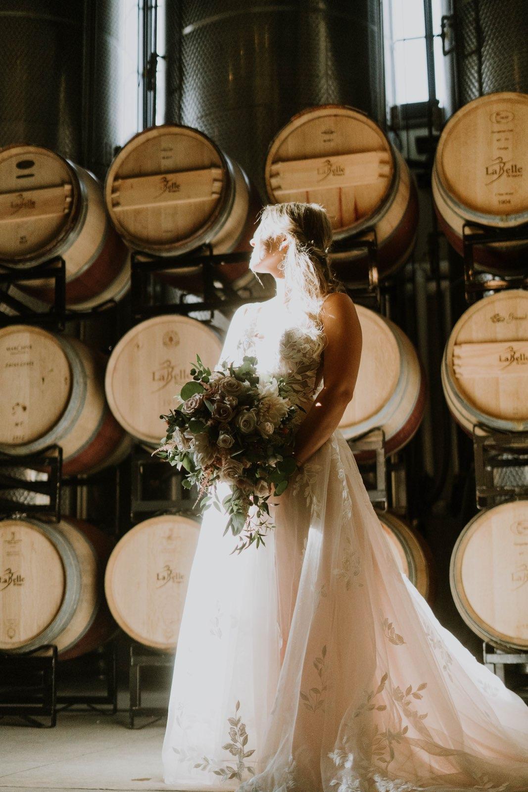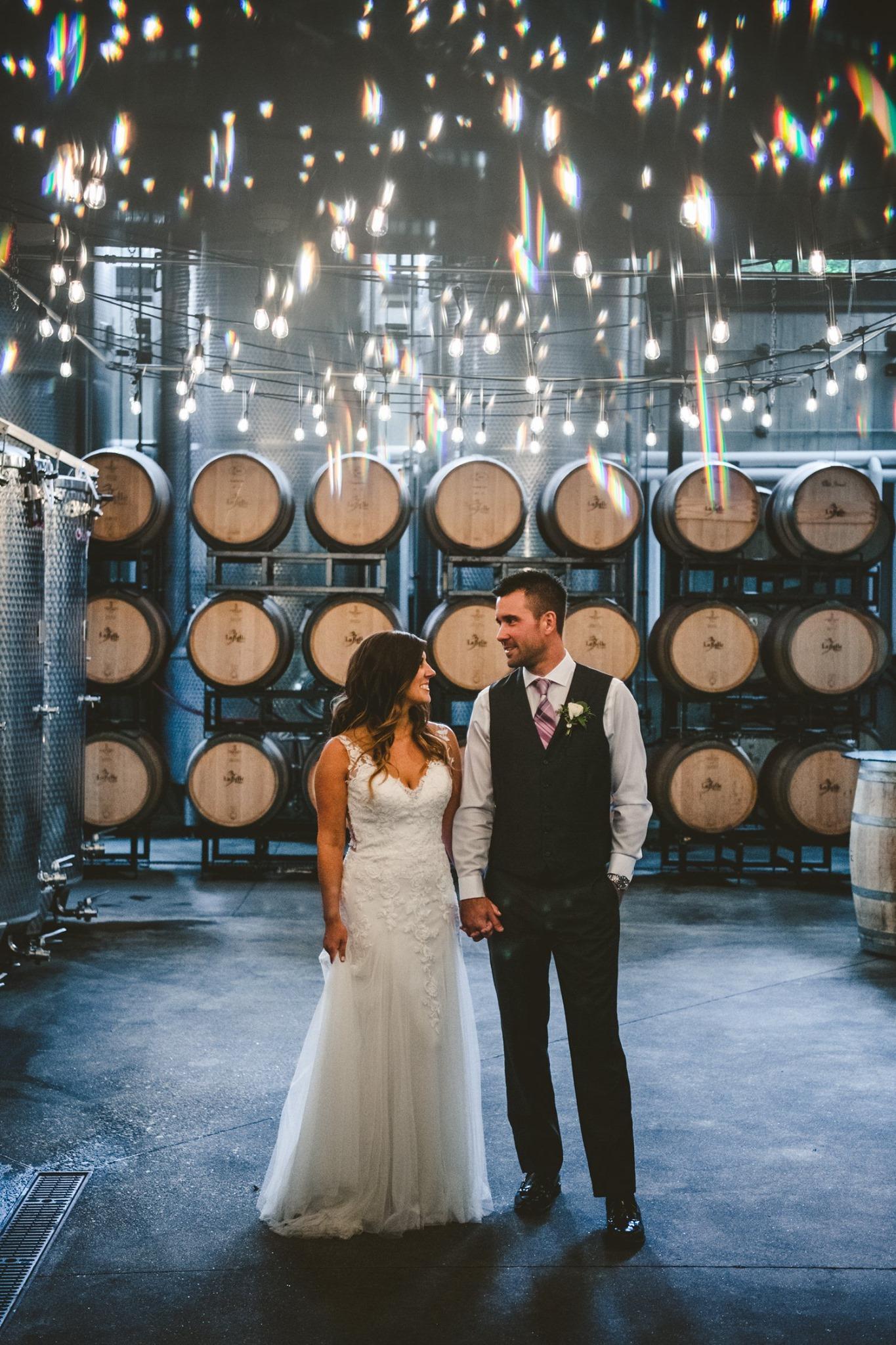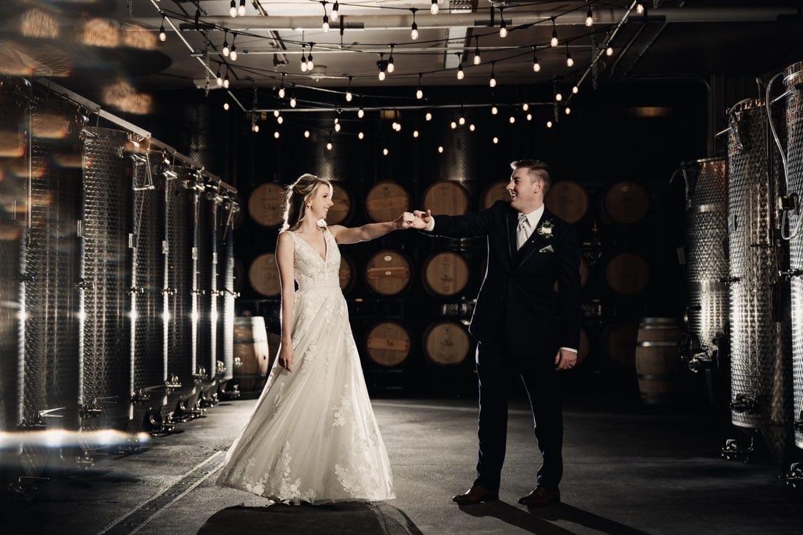 Immerse yourself in the heart of our winemaking in our industrial-style Wine Cellar in Amherst. Surrounded by wine barrels, and tanks, you’ll bask in the soft glow of overhead bistro string lighting. This unique space provides a photographer’s dream backdrop, offering a distinctive atmosphere unlike any other for your wedding photographs. If you seek an unparalleled space for your celebration, consider the Wine Cellar for a truly one-of-a-kind experience.
