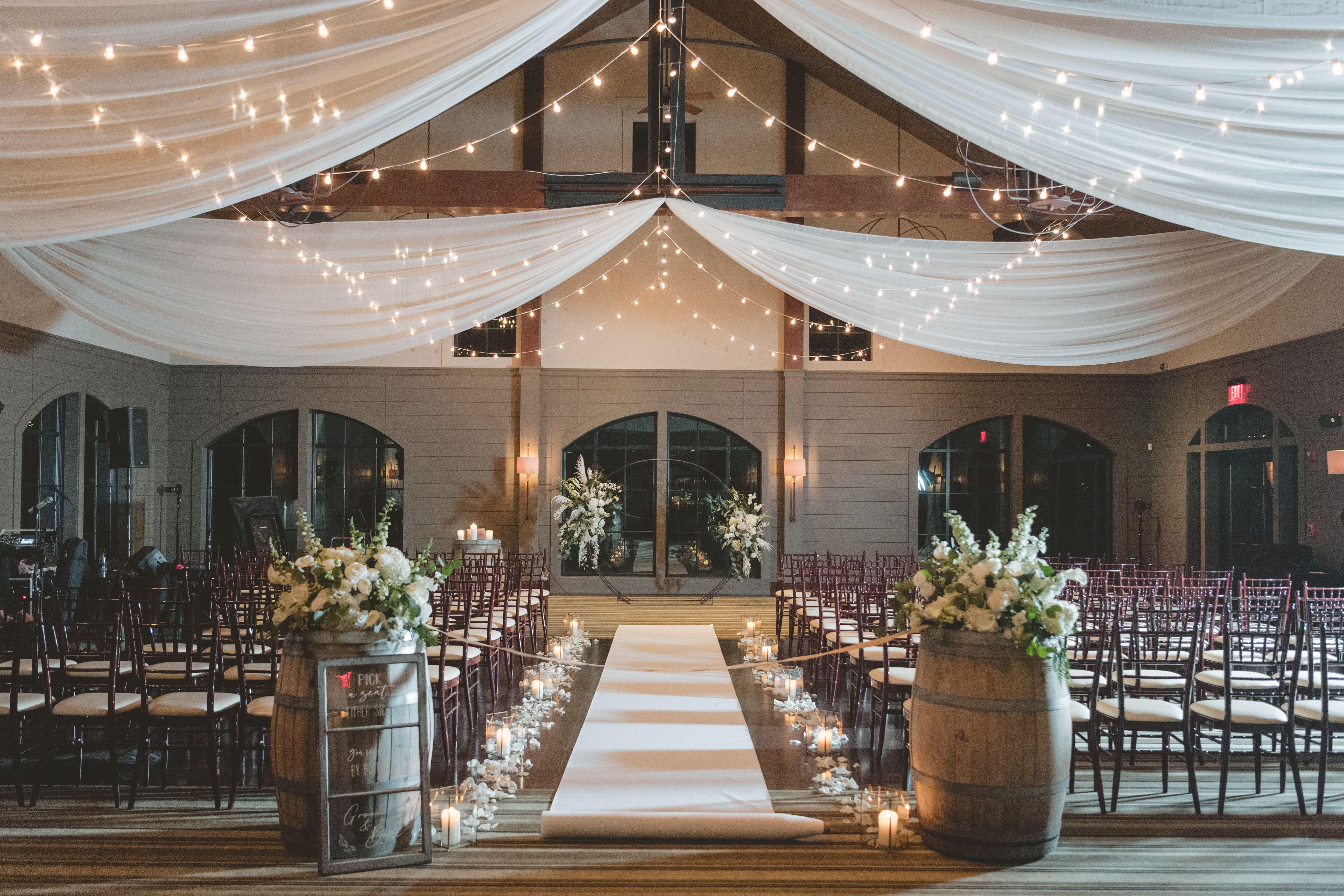 A winding path leads to this landscaped oasis, surrounded by the beauty of nature. A hand-crafted arbor sets the stage for elegant ceremonies. Alternatively, consider a cocktail reception amid the vineyards’ breeze for a stunning and unique experience.