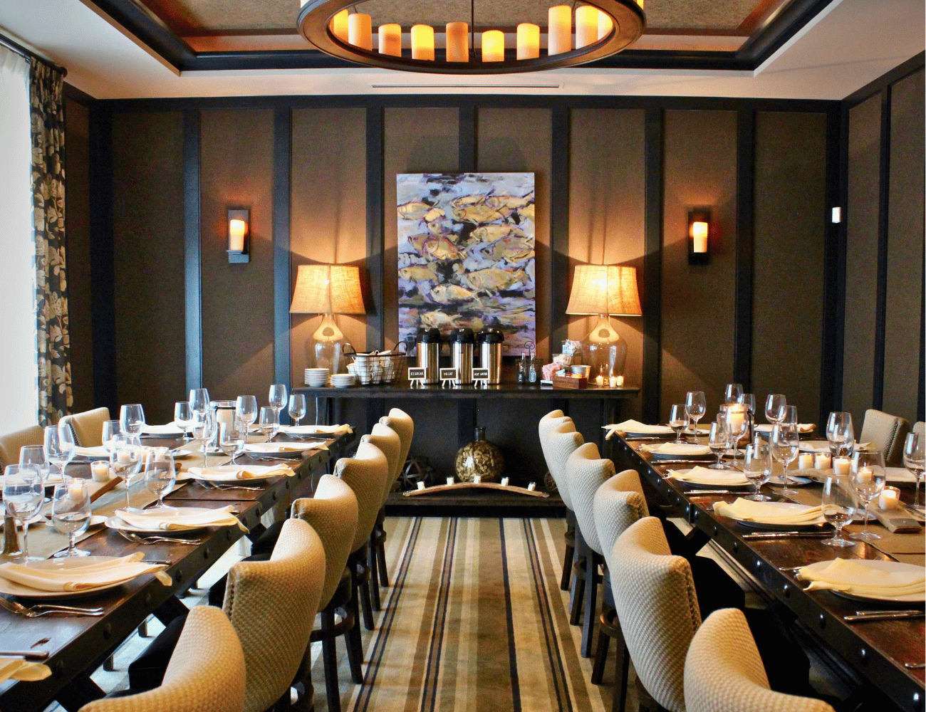 Custom-designed to exude warmth and charm, this room is a perfect haven for the groom and his party or an intimate rehearsal dinner. With its picturesque views and thoughtfully curated ambiance, the Vintage Room invites you to savor the anticipation of your celebration in a setting that perfectly blends comfort and sophistication.