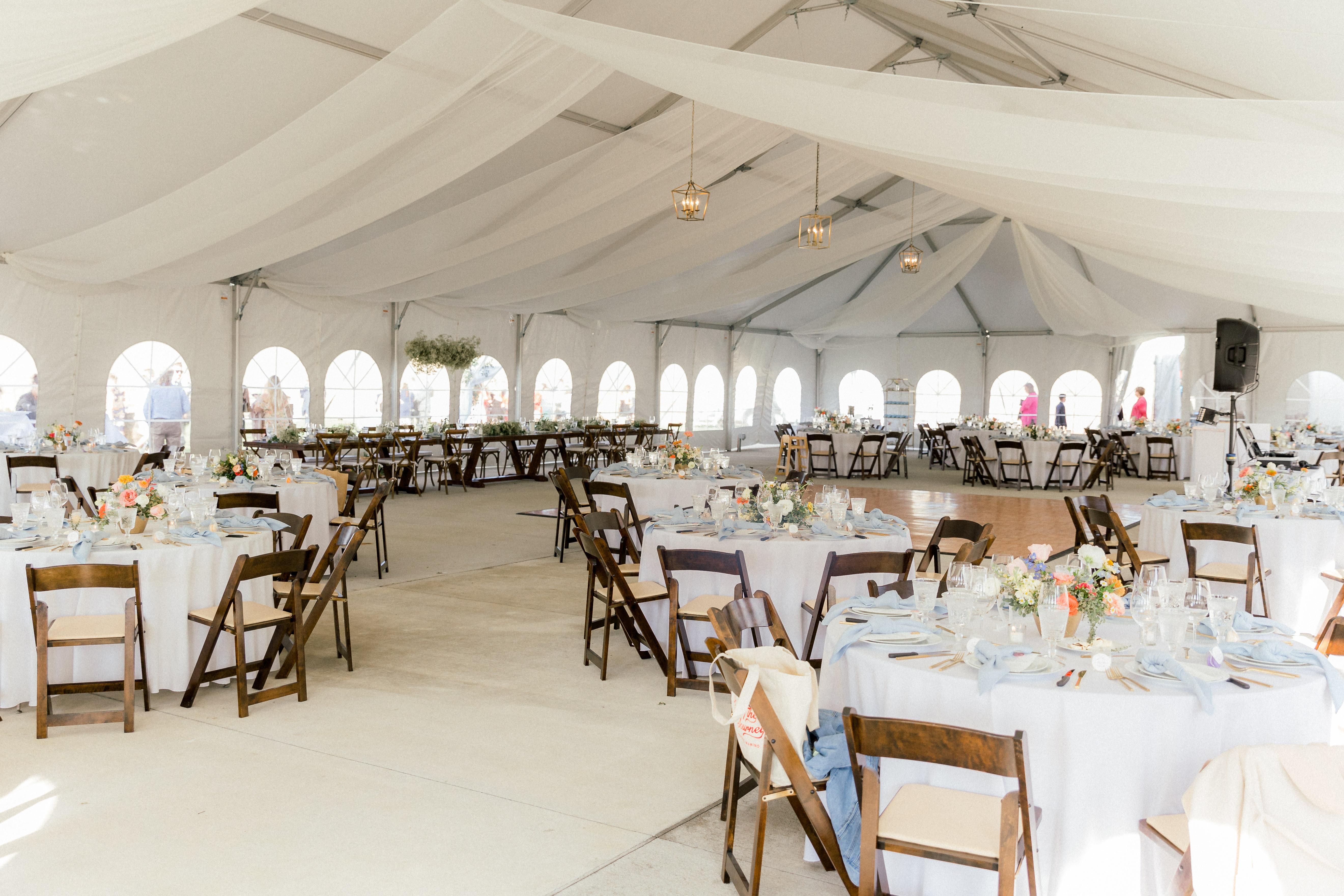 This space features a 17,000 square foot lawn, a 5,000 square foot reception tent, and a 400 square foot catering tent.