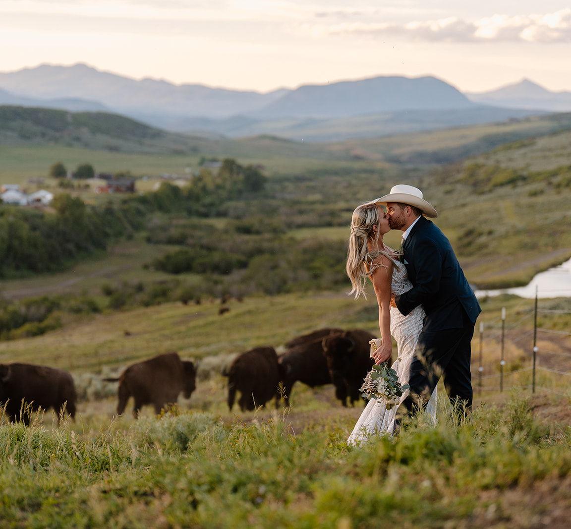Lucky 8 Ranch is a family-owned American bison ranch near Steamboat Springs, Colorado. Couples are invited to take a short scenic drive from Steamboat Springs to discover this rustic oasis. The ranch stretches over 3,000 acres and is available for a party of up to 200 guests. Couples are encouraged to take advantage of the hilltop meadow looking out onto a serene trout creek for outdoor ceremonies. The decor is down to your discretion as the ranch provides an adaptable platform for your own exceptional vision. A must for lovers of the outdoors, Lucky 8 Ranch provides wedding parties with distinct packages geared towards enjoying every aspect of the Colorado experience. Tent rentals, chair rentals, and hay bales for seating are all available on site. Outdoor heaters and fire pits are provided to keep your guests warm as they enjoy the beauty of the Colorado sunset. The friendly and professional staff of the ranch are also on hand to cater to the party’s needs.