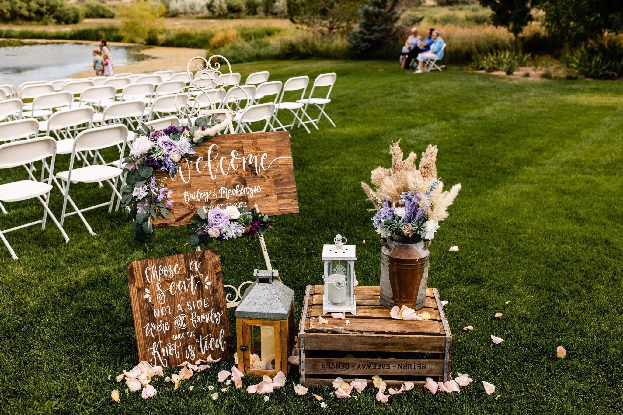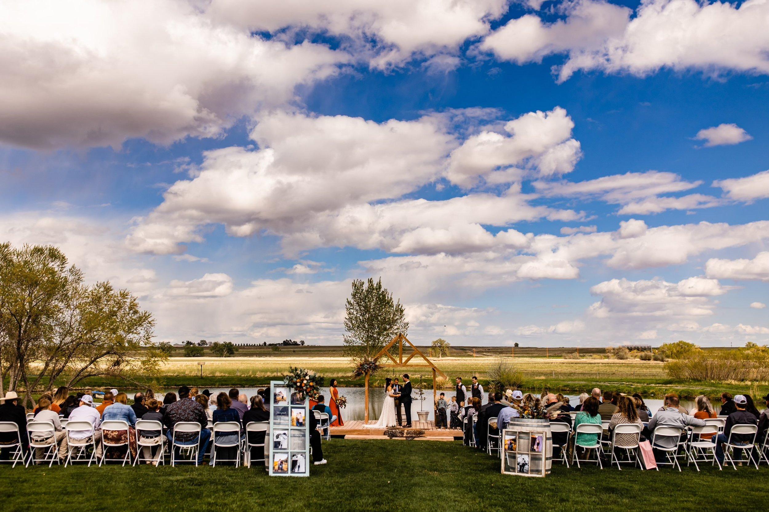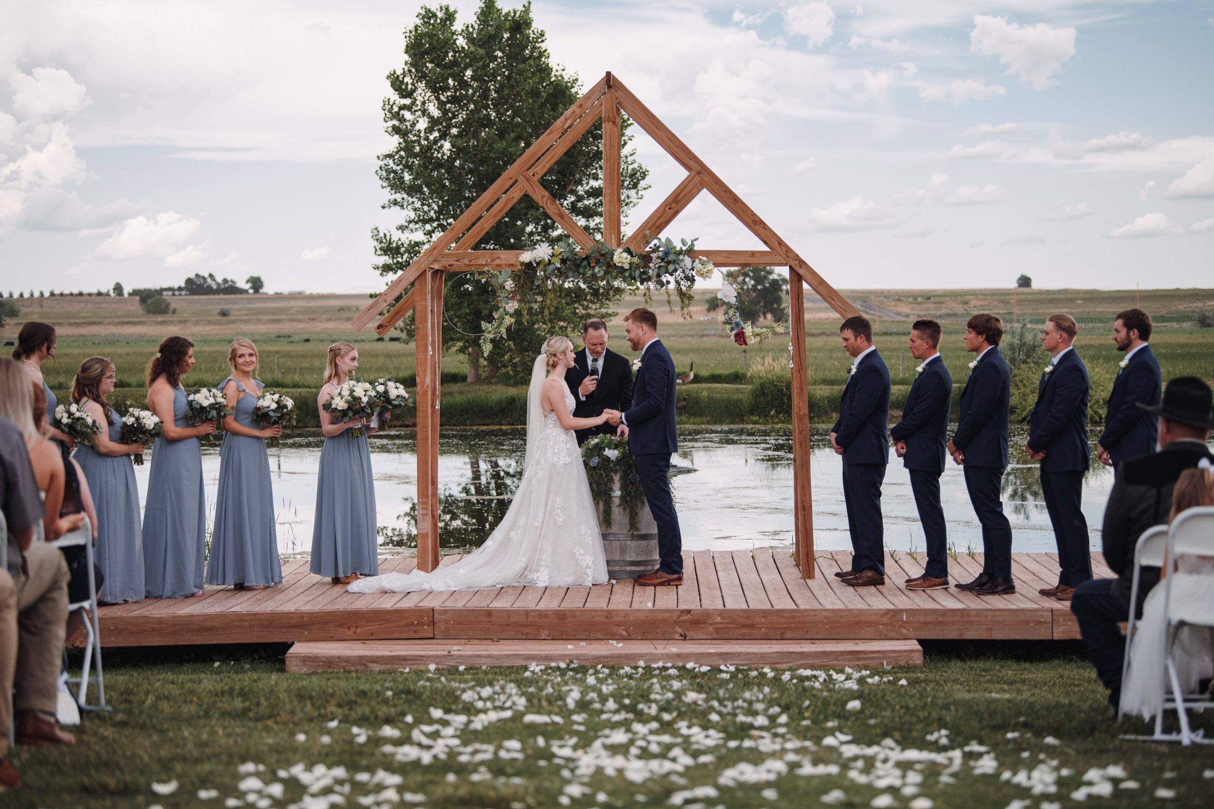 Celebrate your special day at our enchanting wedding venue located in the picturesque Winters Creek Valley of Western Nebraska. Surrounded by lush cattle pastures and natural wetlands, our backdrop features a serene pond with a charming dock, nestled among trees, manicured lawns, and vibrant flower beds. Combine the tranquility of nature with the elegance of your dream wedding at our stunning location. Contact us today to book your unforgettable wedding experience. Our completely outdoor venue can accommodate up to 200 guests. Catering is available through our in town location or you can provide your own catering. Discover the magic of a venue that combines elegance with a touch of the unexpected, ensuring your celebration is as extraordinary as your love story.