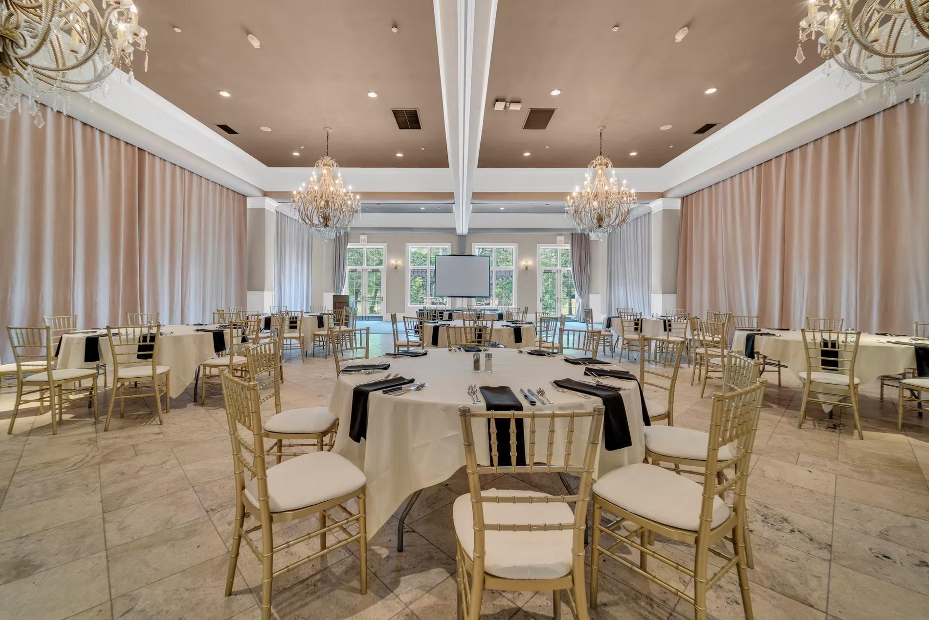 Pinnacle Golf Club offers a variety of versatile spaces for your entire wedding celebration. The grand Ballroom provides an elegant setting for a reception, while our outdoor areas, like the manicured Ceremony Lawn, offer sweeping views of the golf course and a charming backdrop for exchanging vows. For pre- and post-wedding events, the versatile Rooftop Terrace is perfect for a rehearsal dinner under the stars, while the cozy Loft and intimate Private Dining Room are ideal for a bridal shower, a morning-after brunch, or a bourbon tasting with your wedding party. Each space can be customized to fit your unique style and guest count, ensuring a memorable experience from start to finish.