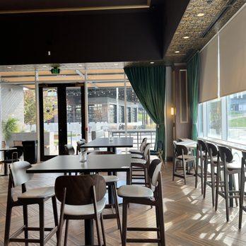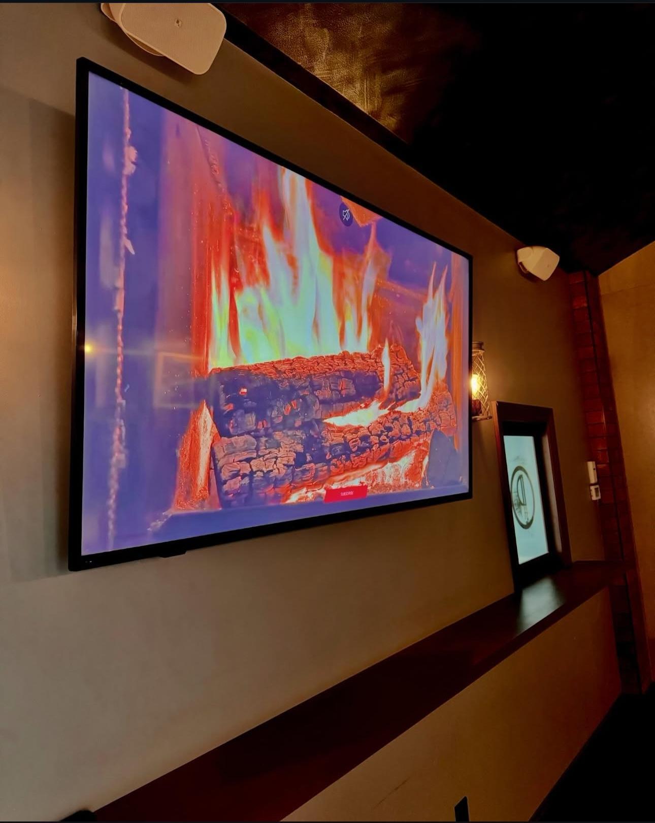 All Public spaces of establishment as well as, the patio Capacity is 120 people Includes three total TVs Access to music, a fold up table and a black table cloth.