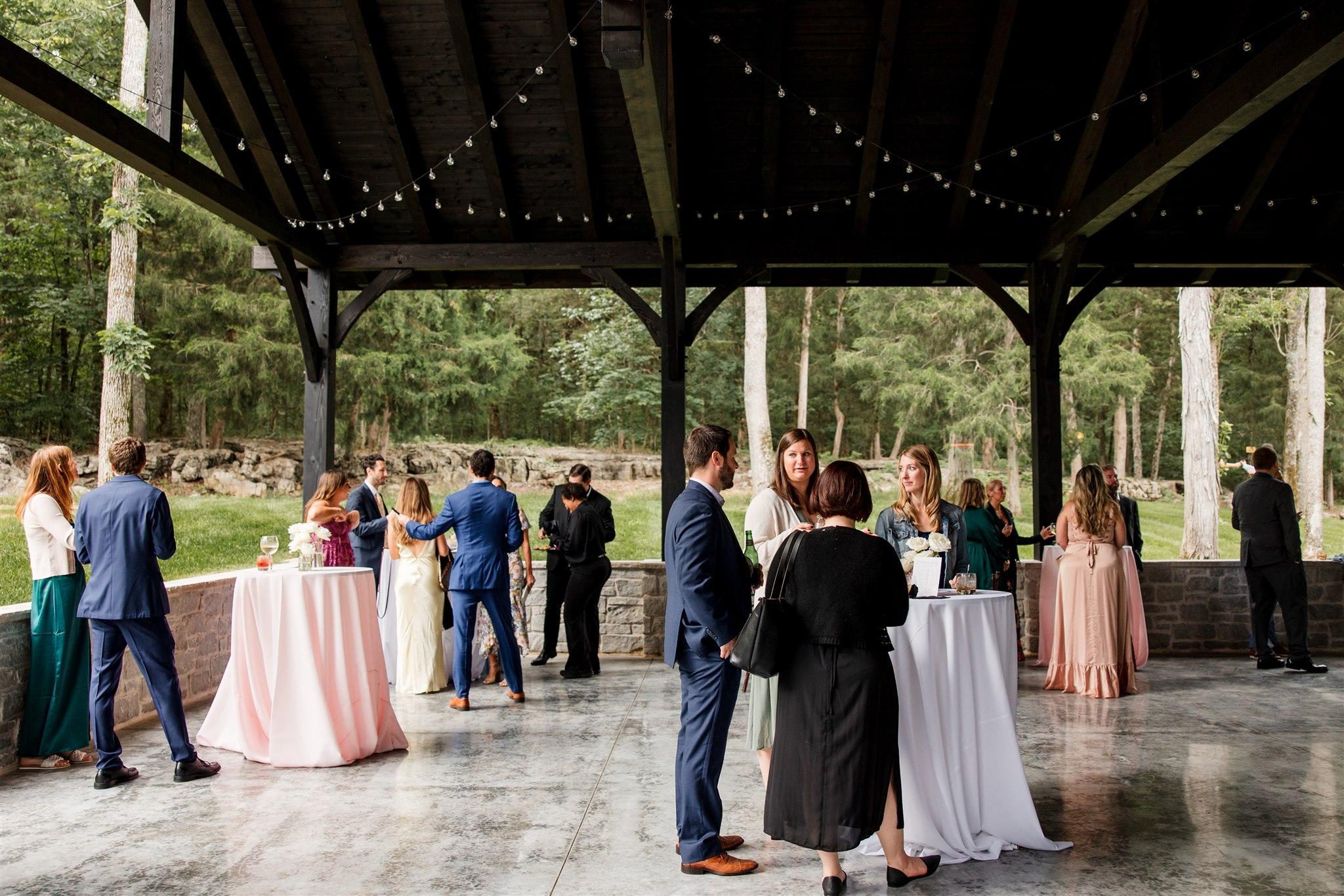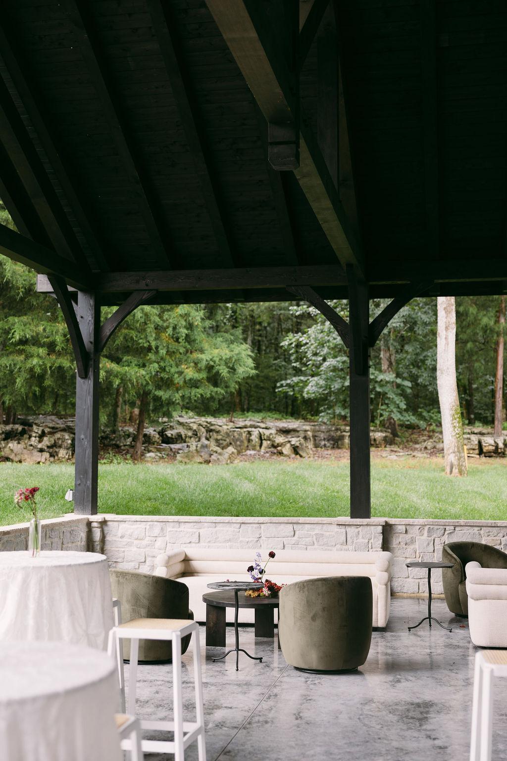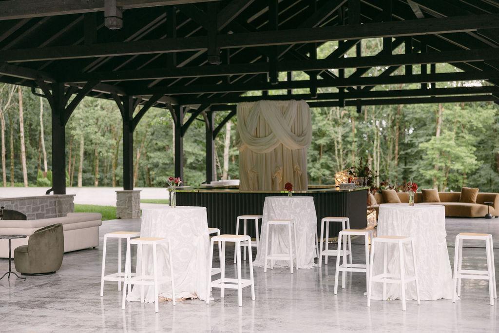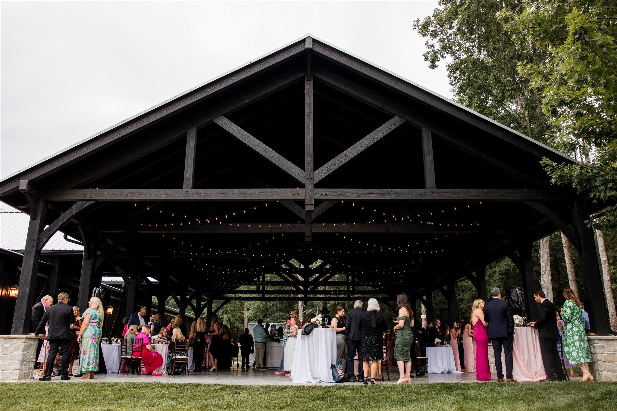 The new covered pavilion features intricate wooden beams and ambient lighting, providing a beautiful and versatile space for ceremonies and receptions. It offers a perfect indoor/outdoor experience, combining the natural beauty of the countryside with the comfort of a well-designed, sheltered venue. This pavilion is an enchanting centerpiece, ensuring your special day is both memorable and magical.