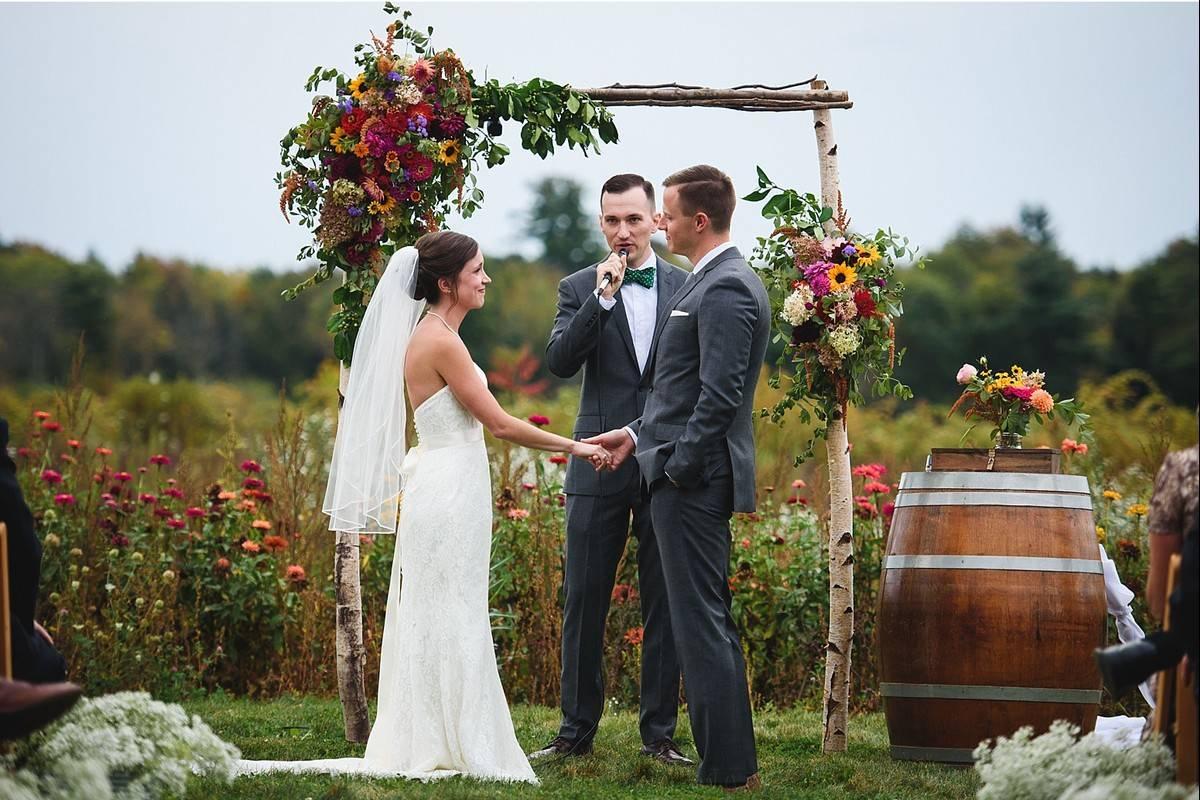 Silver Queen Farm is a rustic barn wedding venue located in Trumansburg, New York. The venue is a working fruit and vegetable farm with crops that provide a picturesque backdrop for your wedding photos. Silver Queen Farm sits on a 100-acre plot of land in the Finger Lakes with several spaces to choose from for ceremonies and receptions both inside and out. The barn is filled with rustic charm, but can be easily transformed to offer an elegant ambiance for your perfect wedding.