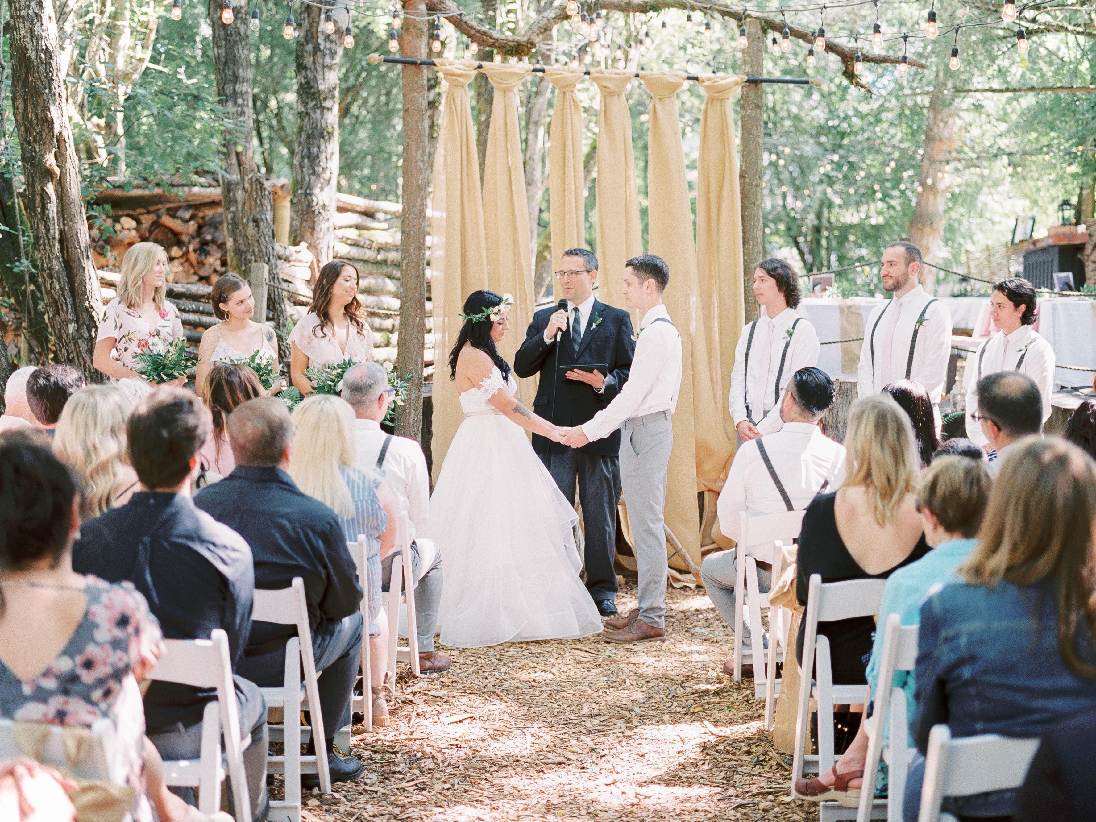 My partner and I looked at a couple of wedding venues in the first stages of planning, and once we visited the Aerie we knew immediately it was the right fit. We rented The Cave - their smaller outdoor venue - and it fit our vision for the day perfectly. It felt rustic and secluded without having to drive an hour outside of Portland, and it was simply gorgeous. Natasha who we worked with for the year in the lead up was phenomenal - we felt listened to and taken care of with her. We're so happy to have had our special day at the Aerie!!