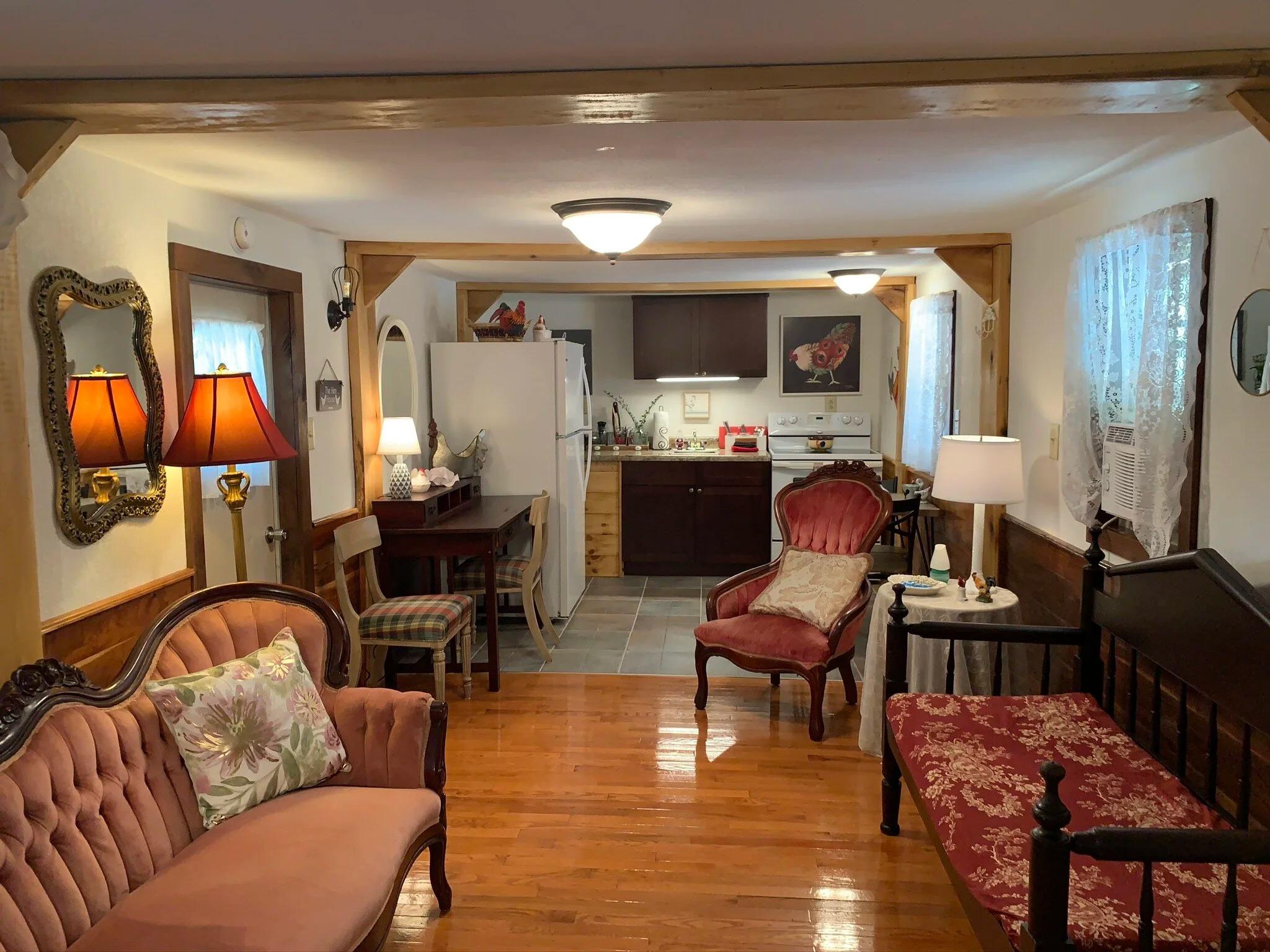 • The Hen House: The Hen House is our adorable one-bedroom farm cottage and is fully-equipped for overnight stays. There is plenty of room for the bride to dress and hang out with her bridal party before the ceremony and cozy enough for the new couple to snuggle up together. Heated and air-conditioned for a comfortable stay. • The Bullpen: The Bullpen is the perfect place for the groom and his pals to prep and relax before the festivities begin. It comes with a refrigerator, sectional sofa, clothes rack, and foosball.