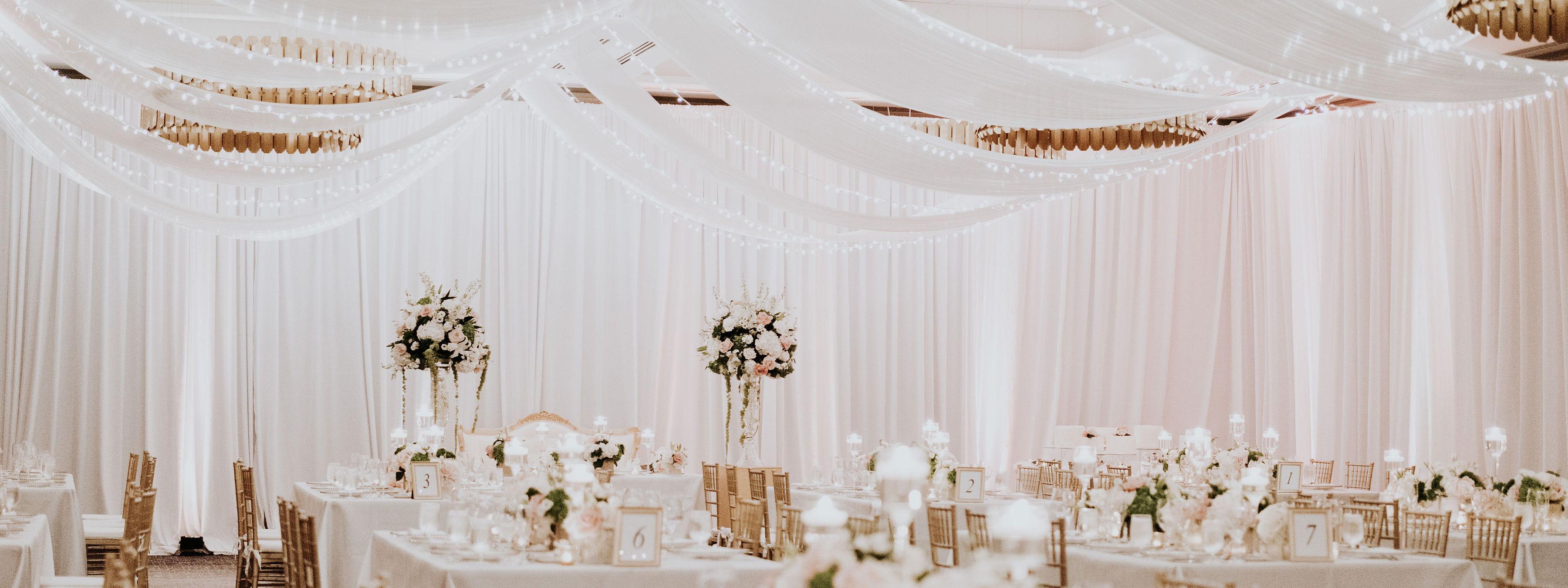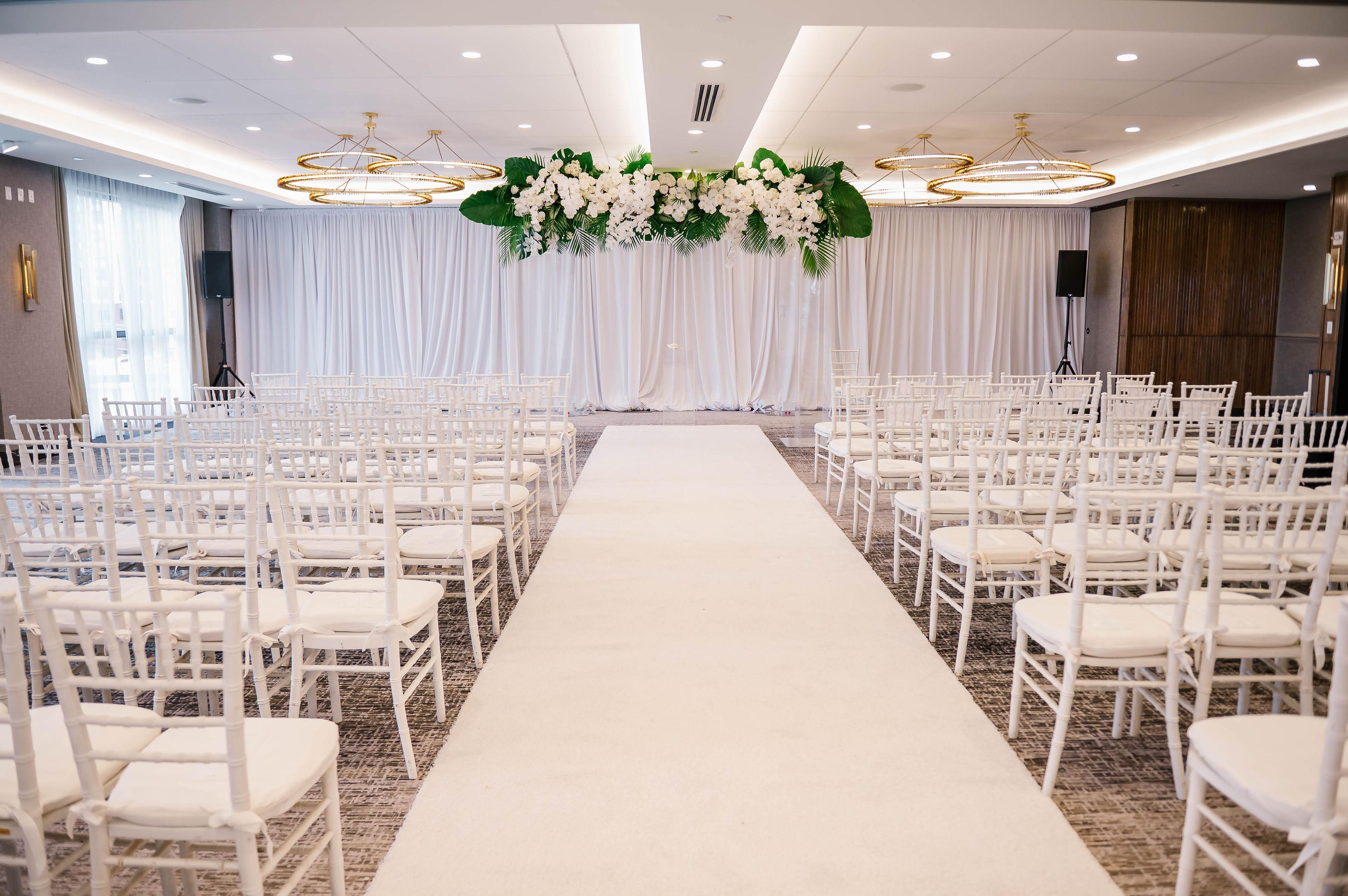 The elegant Dalmar Ballroom features a stylish, neutral color palette with floor-to-ceiling windows and flexible configurations.