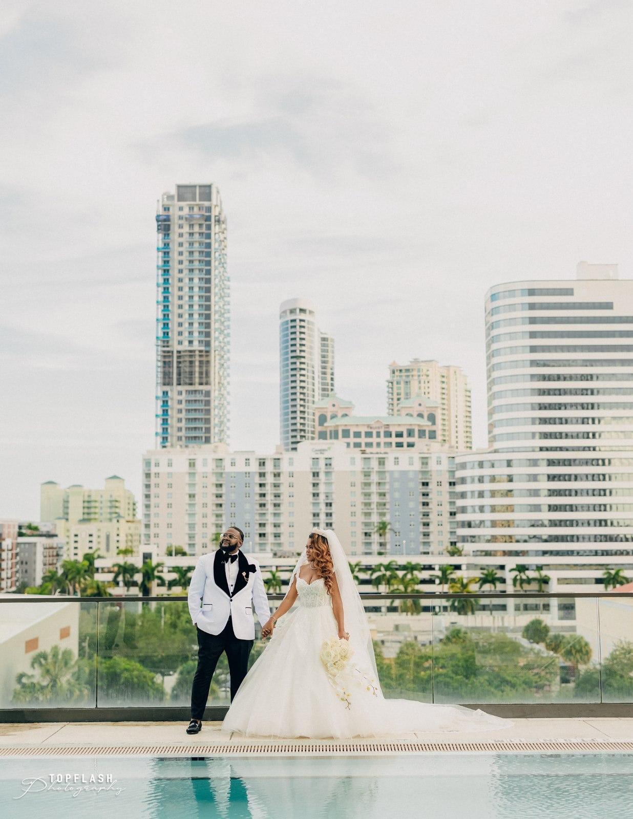 Celebrate in Sunset Golden Hour from our West Terrace overlooking Fort Lauderdale City Views with Guaranteed Indoor Ballroom as Weather Back-Up or An Intimate Ballroom Ceremony